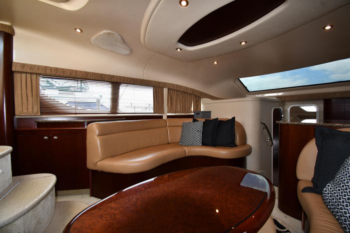 Freshwater / Great Lakes boat since new this vessel features Twin Cummins 480CE 480-hp Diesel Engine's with 950 original hours. Notable features include but are not limited to the following: Air-Conditioning & Heat (4-Units), (2) Heads (Vacuflush) w/Vanity/Sink/Stall-Shower's, Central Vacuum System, Washer/Dryer, Canvas Carpet Runners, Onan 9.0kw Generator, Windlass Anchor w/Forward Pedal Controls, Cockpit AC/Heat, Bow Thruster, Raymarine Electronics (VHF Marine Radio, Sum-Log w/Depth/Speed/Trip-Log, C120 Radar w/GPS/Chartplotter, Autoplotter), Cockpit Wet Bar w/Sink/Refrigerator, and MUCH more!