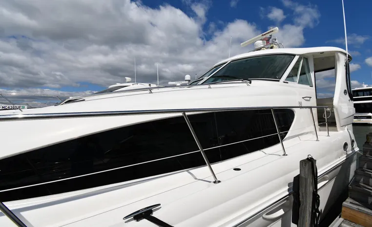 Freshwater / Great Lakes boat since new this vessel features Twin Cummins 480CE 480-hp Diesel Engine's with 950 original hours. Notable features include but are not limited to the following: Air-Conditioning & Heat (4-Units), (2) Heads (Vacuflush) w/Vanity/Sink/Stall-Shower's, Central Vacuum System, Washer/Dryer, Canvas Carpet Runners, Onan 9.0kw Generator, Windlass Anchor w/Forward Pedal Controls, Cockpit AC/Heat, Bow Thruster, Raymarine Electronics (VHF Marine Radio, Sum-Log w/Depth/Speed/Trip-Log, C120 Radar w/GPS/Chartplotter, Autoplotter), Cockpit Wet Bar w/Sink/Refrigerator, and MUCH more!