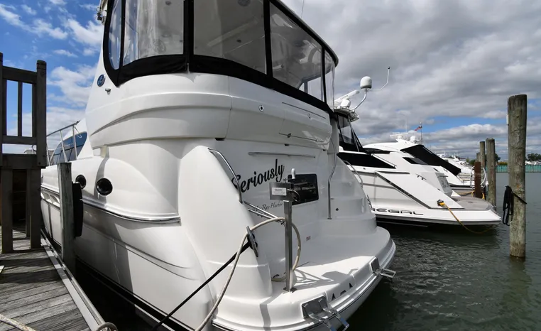 Freshwater / Great Lakes boat since new this vessel features Twin Cummins 480CE 480-hp Diesel Engine's with 950 original hours. Notable features include but are not limited to the following: Air-Conditioning & Heat (4-Units), (2) Heads (Vacuflush) w/Vanity/Sink/Stall-Shower's, Central Vacuum System, Washer/Dryer, Canvas Carpet Runners, Onan 9.0kw Generator, Windlass Anchor w/Forward Pedal Controls, Cockpit AC/Heat, Bow Thruster, Raymarine Electronics (VHF Marine Radio, Sum-Log w/Depth/Speed/Trip-Log, C120 Radar w/GPS/Chartplotter, Autoplotter), Cockpit Wet Bar w/Sink/Refrigerator, and MUCH more!