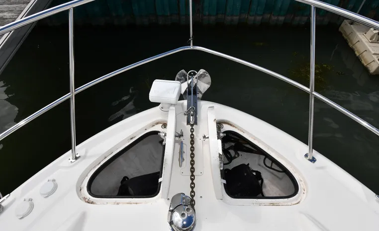 Freshwater / Great Lakes boat since new this vessel features Twin Cummins 480CE 480-hp Diesel Engine's with 950 original hours. Notable features include but are not limited to the following: Air-Conditioning & Heat (4-Units), (2) Heads (Vacuflush) w/Vanity/Sink/Stall-Shower's, Central Vacuum System, Washer/Dryer, Canvas Carpet Runners, Onan 9.0kw Generator, Windlass Anchor w/Forward Pedal Controls, Cockpit AC/Heat, Bow Thruster, Raymarine Electronics (VHF Marine Radio, Sum-Log w/Depth/Speed/Trip-Log, C120 Radar w/GPS/Chartplotter, Autoplotter), Cockpit Wet Bar w/Sink/Refrigerator, and MUCH more!