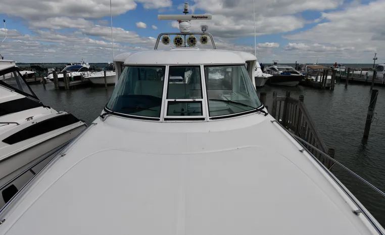 Freshwater / Great Lakes boat since new this vessel features Twin Cummins 480CE 480-hp Diesel Engine's with 950 original hours. Notable features include but are not limited to the following: Air-Conditioning & Heat (4-Units), (2) Heads (Vacuflush) w/Vanity/Sink/Stall-Shower's, Central Vacuum System, Washer/Dryer, Canvas Carpet Runners, Onan 9.0kw Generator, Windlass Anchor w/Forward Pedal Controls, Cockpit AC/Heat, Bow Thruster, Raymarine Electronics (VHF Marine Radio, Sum-Log w/Depth/Speed/Trip-Log, C120 Radar w/GPS/Chartplotter, Autoplotter), Cockpit Wet Bar w/Sink/Refrigerator, and MUCH more!