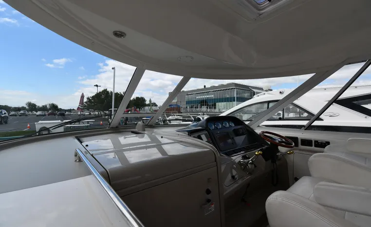 Freshwater / Great Lakes boat since new this vessel features Twin Cummins 480CE 480-hp Diesel Engine's with 950 original hours. Notable features include but are not limited to the following: Air-Conditioning & Heat (4-Units), (2) Heads (Vacuflush) w/Vanity/Sink/Stall-Shower's, Central Vacuum System, Washer/Dryer, Canvas Carpet Runners, Onan 9.0kw Generator, Windlass Anchor w/Forward Pedal Controls, Cockpit AC/Heat, Bow Thruster, Raymarine Electronics (VHF Marine Radio, Sum-Log w/Depth/Speed/Trip-Log, C120 Radar w/GPS/Chartplotter, Autoplotter), Cockpit Wet Bar w/Sink/Refrigerator, and MUCH more!