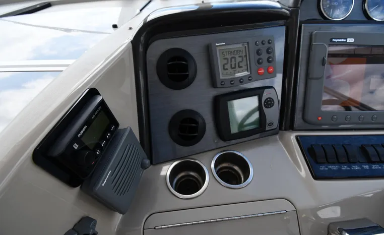 Freshwater / Great Lakes boat since new this vessel features Twin Cummins 480CE 480-hp Diesel Engine's with 950 original hours. Notable features include but are not limited to the following: Air-Conditioning & Heat (4-Units), (2) Heads (Vacuflush) w/Vanity/Sink/Stall-Shower's, Central Vacuum System, Washer/Dryer, Canvas Carpet Runners, Onan 9.0kw Generator, Windlass Anchor w/Forward Pedal Controls, Cockpit AC/Heat, Bow Thruster, Raymarine Electronics (VHF Marine Radio, Sum-Log w/Depth/Speed/Trip-Log, C120 Radar w/GPS/Chartplotter, Autoplotter), Cockpit Wet Bar w/Sink/Refrigerator, and MUCH more!