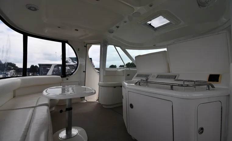 Freshwater / Great Lakes boat since new this vessel features Twin Cummins 480CE 480-hp Diesel Engine's with 950 original hours. Notable features include but are not limited to the following: Air-Conditioning & Heat (4-Units), (2) Heads (Vacuflush) w/Vanity/Sink/Stall-Shower's, Central Vacuum System, Washer/Dryer, Canvas Carpet Runners, Onan 9.0kw Generator, Windlass Anchor w/Forward Pedal Controls, Cockpit AC/Heat, Bow Thruster, Raymarine Electronics (VHF Marine Radio, Sum-Log w/Depth/Speed/Trip-Log, C120 Radar w/GPS/Chartplotter, Autoplotter), Cockpit Wet Bar w/Sink/Refrigerator, and MUCH more!