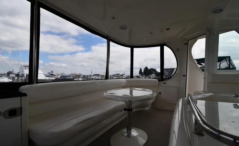 Freshwater / Great Lakes boat since new this vessel features Twin Cummins 480CE 480-hp Diesel Engine's with 950 original hours. Notable features include but are not limited to the following: Air-Conditioning & Heat (4-Units), (2) Heads (Vacuflush) w/Vanity/Sink/Stall-Shower's, Central Vacuum System, Washer/Dryer, Canvas Carpet Runners, Onan 9.0kw Generator, Windlass Anchor w/Forward Pedal Controls, Cockpit AC/Heat, Bow Thruster, Raymarine Electronics (VHF Marine Radio, Sum-Log w/Depth/Speed/Trip-Log, C120 Radar w/GPS/Chartplotter, Autoplotter), Cockpit Wet Bar w/Sink/Refrigerator, and MUCH more!