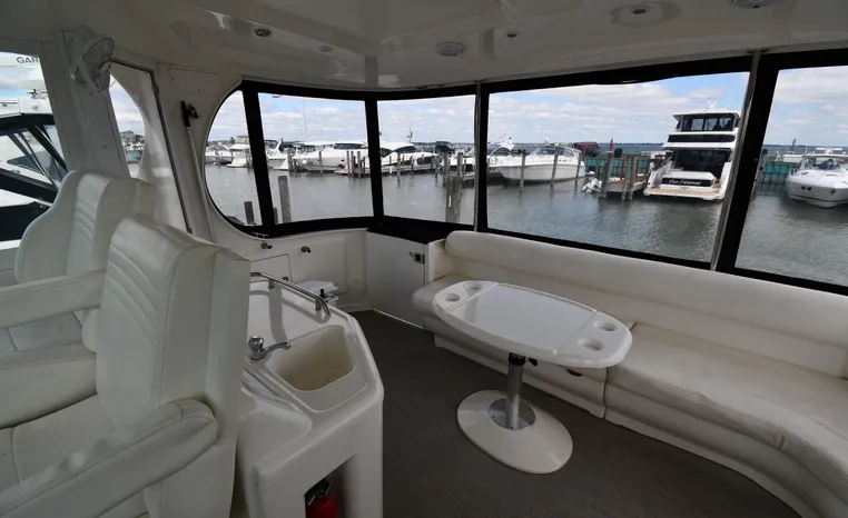 Freshwater / Great Lakes boat since new this vessel features Twin Cummins 480CE 480-hp Diesel Engine's with 950 original hours. Notable features include but are not limited to the following: Air-Conditioning & Heat (4-Units), (2) Heads (Vacuflush) w/Vanity/Sink/Stall-Shower's, Central Vacuum System, Washer/Dryer, Canvas Carpet Runners, Onan 9.0kw Generator, Windlass Anchor w/Forward Pedal Controls, Cockpit AC/Heat, Bow Thruster, Raymarine Electronics (VHF Marine Radio, Sum-Log w/Depth/Speed/Trip-Log, C120 Radar w/GPS/Chartplotter, Autoplotter), Cockpit Wet Bar w/Sink/Refrigerator, and MUCH more!