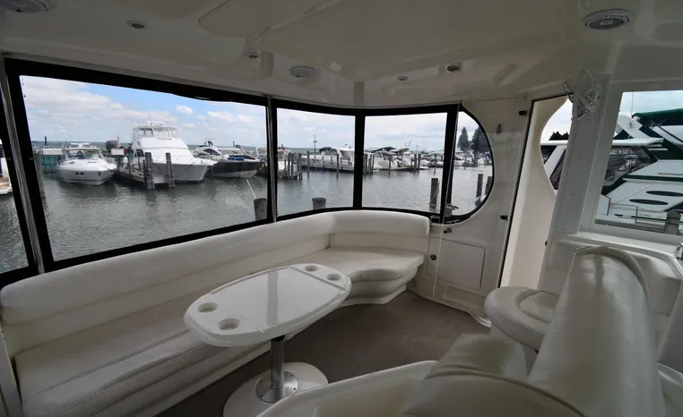 Freshwater / Great Lakes boat since new this vessel features Twin Cummins 480CE 480-hp Diesel Engine's with 950 original hours. Notable features include but are not limited to the following: Air-Conditioning & Heat (4-Units), (2) Heads (Vacuflush) w/Vanity/Sink/Stall-Shower's, Central Vacuum System, Washer/Dryer, Canvas Carpet Runners, Onan 9.0kw Generator, Windlass Anchor w/Forward Pedal Controls, Cockpit AC/Heat, Bow Thruster, Raymarine Electronics (VHF Marine Radio, Sum-Log w/Depth/Speed/Trip-Log, C120 Radar w/GPS/Chartplotter, Autoplotter), Cockpit Wet Bar w/Sink/Refrigerator, and MUCH more!