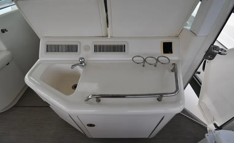 Freshwater / Great Lakes boat since new this vessel features Twin Cummins 480CE 480-hp Diesel Engine's with 950 original hours. Notable features include but are not limited to the following: Air-Conditioning & Heat (4-Units), (2) Heads (Vacuflush) w/Vanity/Sink/Stall-Shower's, Central Vacuum System, Washer/Dryer, Canvas Carpet Runners, Onan 9.0kw Generator, Windlass Anchor w/Forward Pedal Controls, Cockpit AC/Heat, Bow Thruster, Raymarine Electronics (VHF Marine Radio, Sum-Log w/Depth/Speed/Trip-Log, C120 Radar w/GPS/Chartplotter, Autoplotter), Cockpit Wet Bar w/Sink/Refrigerator, and MUCH more!