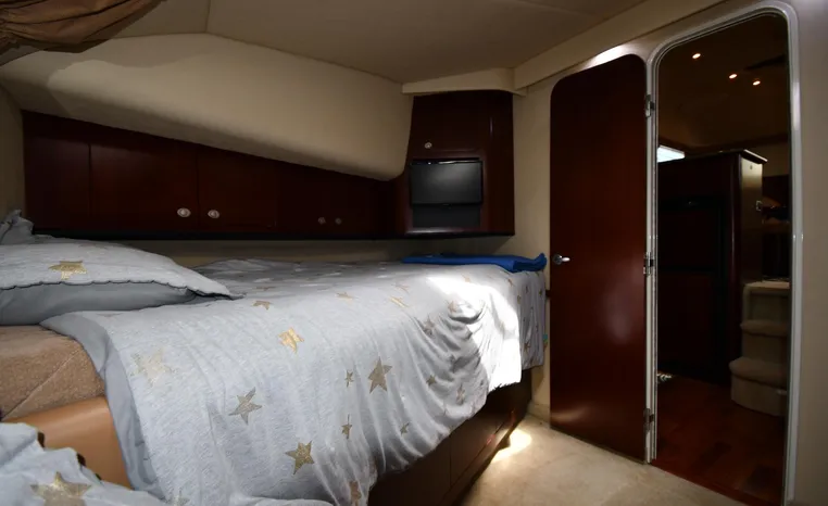 Freshwater / Great Lakes boat since new this vessel features Twin Cummins 480CE 480-hp Diesel Engine's with 950 original hours. Notable features include but are not limited to the following: Air-Conditioning & Heat (4-Units), (2) Heads (Vacuflush) w/Vanity/Sink/Stall-Shower's, Central Vacuum System, Washer/Dryer, Canvas Carpet Runners, Onan 9.0kw Generator, Windlass Anchor w/Forward Pedal Controls, Cockpit AC/Heat, Bow Thruster, Raymarine Electronics (VHF Marine Radio, Sum-Log w/Depth/Speed/Trip-Log, C120 Radar w/GPS/Chartplotter, Autoplotter), Cockpit Wet Bar w/Sink/Refrigerator, and MUCH more!