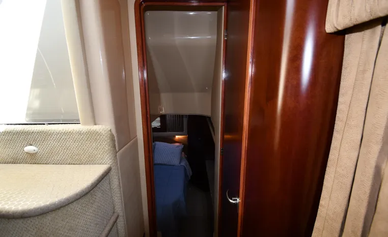 Freshwater / Great Lakes boat since new this vessel features Twin Cummins 480CE 480-hp Diesel Engine's with 950 original hours. Notable features include but are not limited to the following: Air-Conditioning & Heat (4-Units), (2) Heads (Vacuflush) w/Vanity/Sink/Stall-Shower's, Central Vacuum System, Washer/Dryer, Canvas Carpet Runners, Onan 9.0kw Generator, Windlass Anchor w/Forward Pedal Controls, Cockpit AC/Heat, Bow Thruster, Raymarine Electronics (VHF Marine Radio, Sum-Log w/Depth/Speed/Trip-Log, C120 Radar w/GPS/Chartplotter, Autoplotter), Cockpit Wet Bar w/Sink/Refrigerator, and MUCH more!