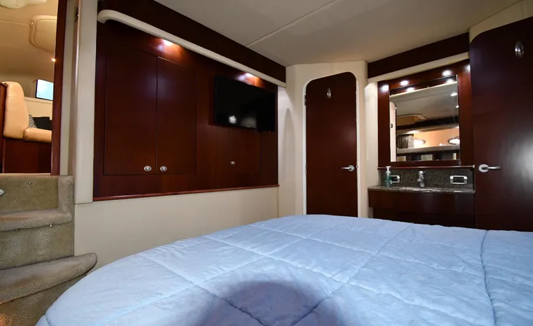 Freshwater / Great Lakes boat since new this vessel features Twin Cummins 480CE 480-hp Diesel Engine's with 950 original hours. Notable features include but are not limited to the following: Air-Conditioning & Heat (4-Units), (2) Heads (Vacuflush) w/Vanity/Sink/Stall-Shower's, Central Vacuum System, Washer/Dryer, Canvas Carpet Runners, Onan 9.0kw Generator, Windlass Anchor w/Forward Pedal Controls, Cockpit AC/Heat, Bow Thruster, Raymarine Electronics (VHF Marine Radio, Sum-Log w/Depth/Speed/Trip-Log, C120 Radar w/GPS/Chartplotter, Autoplotter), Cockpit Wet Bar w/Sink/Refrigerator, and MUCH more!