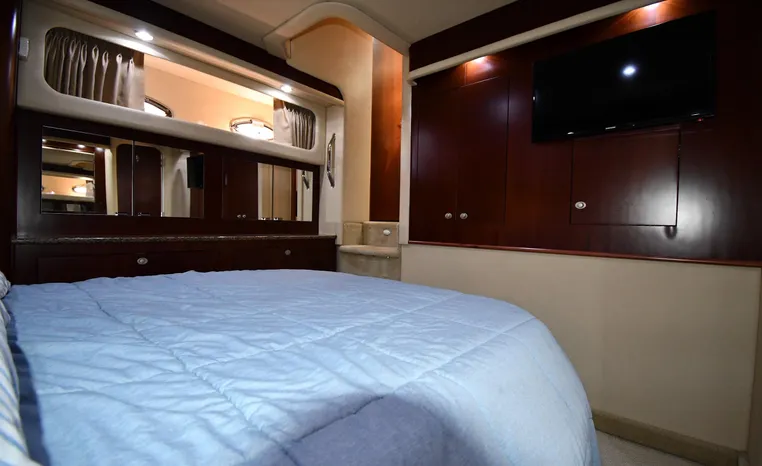 Freshwater / Great Lakes boat since new this vessel features Twin Cummins 480CE 480-hp Diesel Engine's with 950 original hours. Notable features include but are not limited to the following: Air-Conditioning & Heat (4-Units), (2) Heads (Vacuflush) w/Vanity/Sink/Stall-Shower's, Central Vacuum System, Washer/Dryer, Canvas Carpet Runners, Onan 9.0kw Generator, Windlass Anchor w/Forward Pedal Controls, Cockpit AC/Heat, Bow Thruster, Raymarine Electronics (VHF Marine Radio, Sum-Log w/Depth/Speed/Trip-Log, C120 Radar w/GPS/Chartplotter, Autoplotter), Cockpit Wet Bar w/Sink/Refrigerator, and MUCH more!