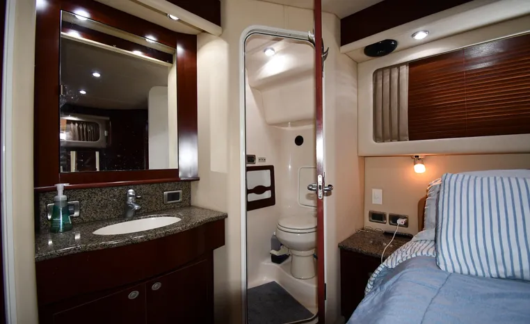 Freshwater / Great Lakes boat since new this vessel features Twin Cummins 480CE 480-hp Diesel Engine's with 950 original hours. Notable features include but are not limited to the following: Air-Conditioning & Heat (4-Units), (2) Heads (Vacuflush) w/Vanity/Sink/Stall-Shower's, Central Vacuum System, Washer/Dryer, Canvas Carpet Runners, Onan 9.0kw Generator, Windlass Anchor w/Forward Pedal Controls, Cockpit AC/Heat, Bow Thruster, Raymarine Electronics (VHF Marine Radio, Sum-Log w/Depth/Speed/Trip-Log, C120 Radar w/GPS/Chartplotter, Autoplotter), Cockpit Wet Bar w/Sink/Refrigerator, and MUCH more!