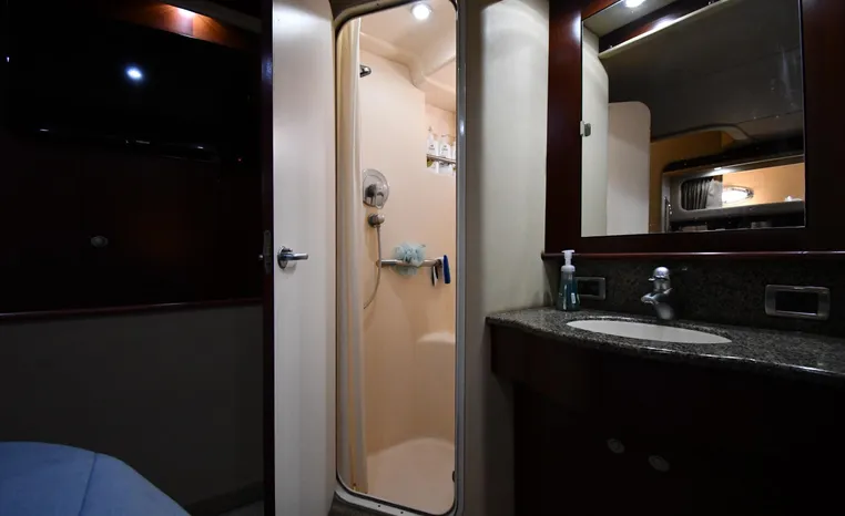 Freshwater / Great Lakes boat since new this vessel features Twin Cummins 480CE 480-hp Diesel Engine's with 950 original hours. Notable features include but are not limited to the following: Air-Conditioning & Heat (4-Units), (2) Heads (Vacuflush) w/Vanity/Sink/Stall-Shower's, Central Vacuum System, Washer/Dryer, Canvas Carpet Runners, Onan 9.0kw Generator, Windlass Anchor w/Forward Pedal Controls, Cockpit AC/Heat, Bow Thruster, Raymarine Electronics (VHF Marine Radio, Sum-Log w/Depth/Speed/Trip-Log, C120 Radar w/GPS/Chartplotter, Autoplotter), Cockpit Wet Bar w/Sink/Refrigerator, and MUCH more!