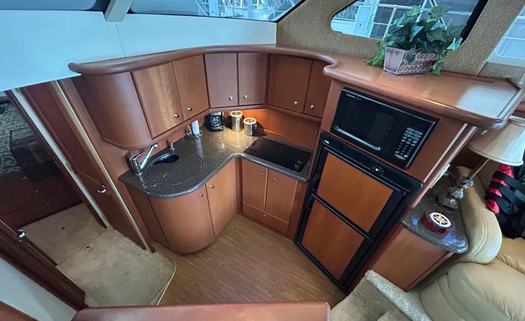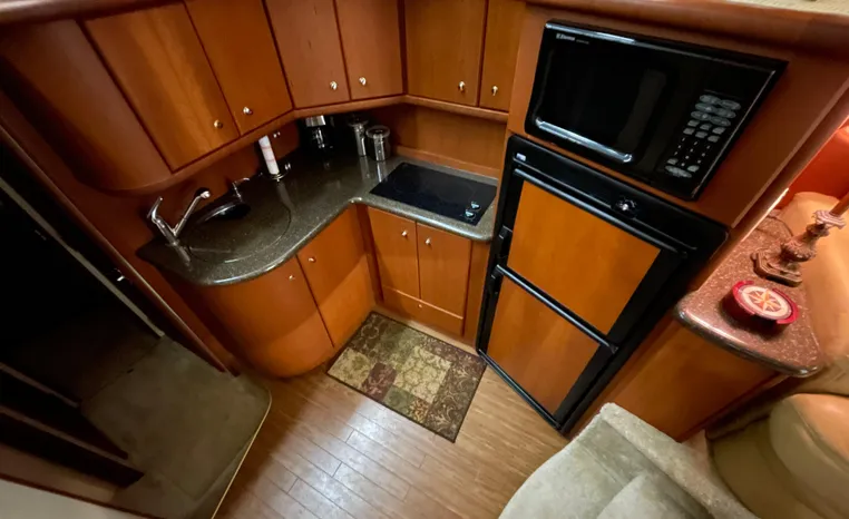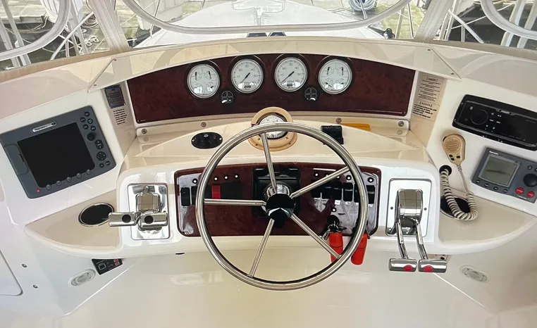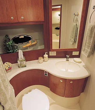 Modern lines and a proven hull grace this comfortable 2-stateroom interior, which features an innovative split head plan with a dry head and vanity to port and a separate stall shower to starboard. The cherry wood salon offers a convertible sofa and plenty of room to entertain. The oversize flybridge with pilot, companion and guest seating rounds out this value-packed model. Silverton engineers along with the help of noted designer Donald Blount & Associates have created an easily driven hull that performs well with smaller displacement engines providing better economy and increased range. Shallow propeller tunnels have lowered the drive angle to increase efficiency and reduce the draft as well. Silverton's evolution of design and 35 years of experience will deliver the best 34 Convertible ever and at a price that will make it irresistible.