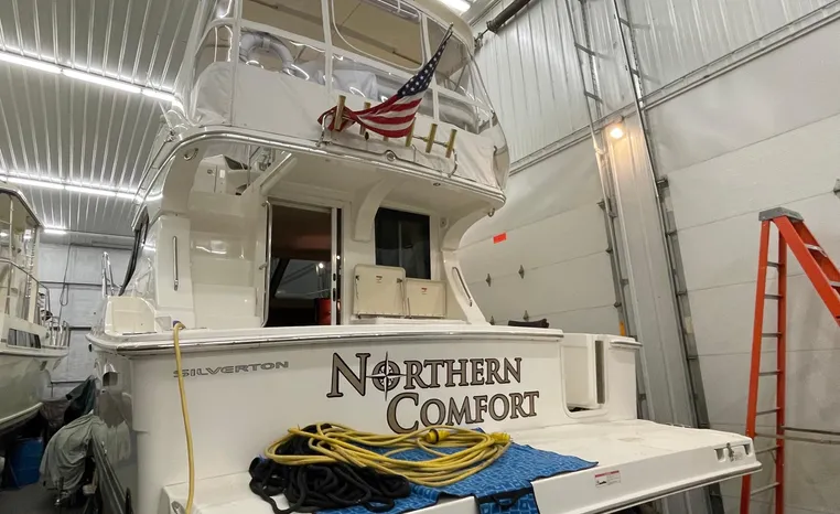 2005 Silverton 34 Convertible located in Prescott, WI. Currently stored inside for easy viewing. Upgraded engines with around 800 hours on them.