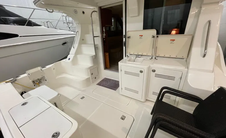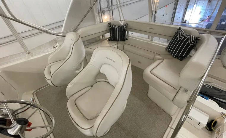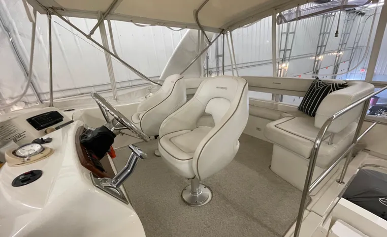 Modern lines and a proven hull grace this comfortable 2-stateroom interior, which features an innovative split head plan with a dry head and vanity to port and a separate stall shower to starboard. The cherry wood salon offers a convertible sofa and plenty of room to entertain. The oversize flybridge with pilot, companion and guest seating rounds out this value-packed model. Silverton engineers along with the help of noted designer Donald Blount & Associates have created an easily driven hull that performs well with smaller displacement engines providing better economy and increased range. Shallow propeller tunnels have lowered the drive angle to increase efficiency and reduce the draft as well. Silverton's evolution of design and 35 years of experience will deliver the best 34 Convertible ever and at a price that will make it irresistible.