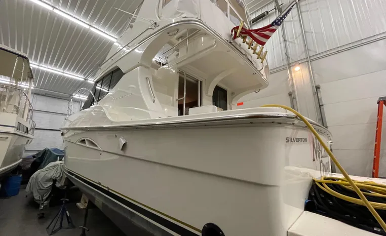 2005 Silverton 34 Convertible located in Prescott, WI. Currently stored inside for easy viewing. Upgraded engines with around 800 hours on them.