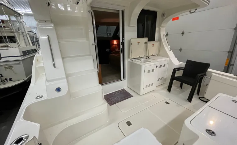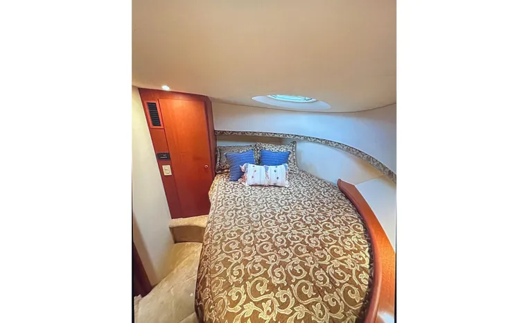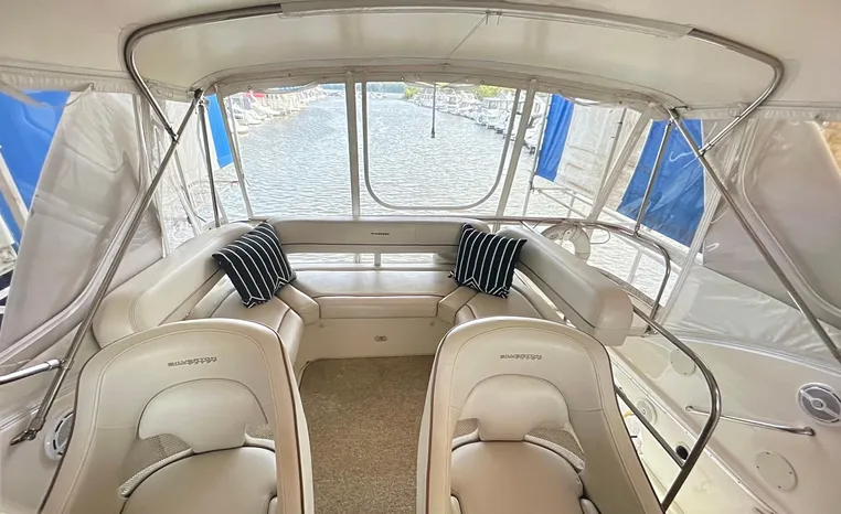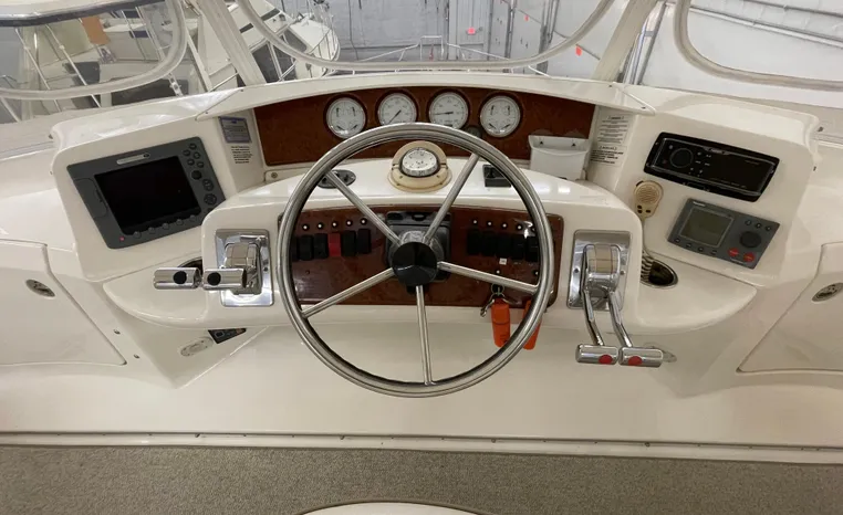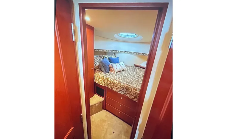 Modern lines and a proven hull grace this comfortable 2-stateroom interior, which features an innovative split head plan with a dry head and vanity to port and a separate stall shower to starboard. The cherry wood salon offers a convertible sofa and plenty of room to entertain. The oversize flybridge with pilot, companion and guest seating rounds out this value-packed model. Silverton engineers along with the help of noted designer Donald Blount & Associates have created an easily driven hull that performs well with smaller displacement engines providing better economy and increased range. Shallow propeller tunnels have lowered the drive angle to increase efficiency and reduce the draft as well. Silverton's evolution of design and 35 years of experience will deliver the best 34 Convertible ever and at a price that will make it irresistible.