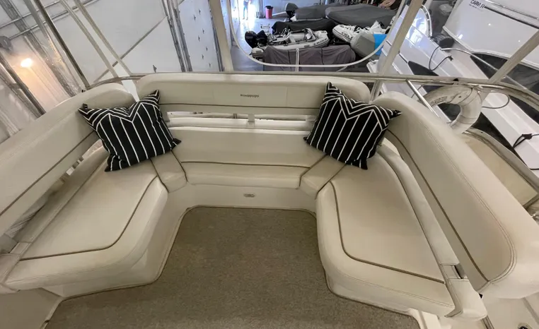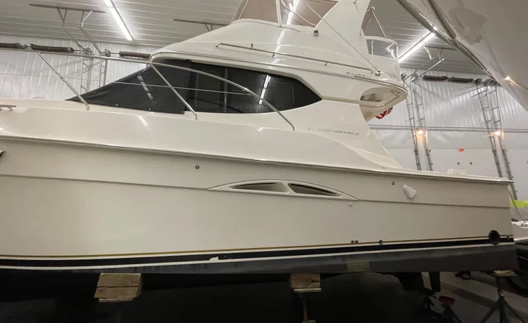 2005 Silverton 34 Convertible located in Prescott, WI. Currently stored inside for easy viewing. Upgraded engines with around 800 hours on them.