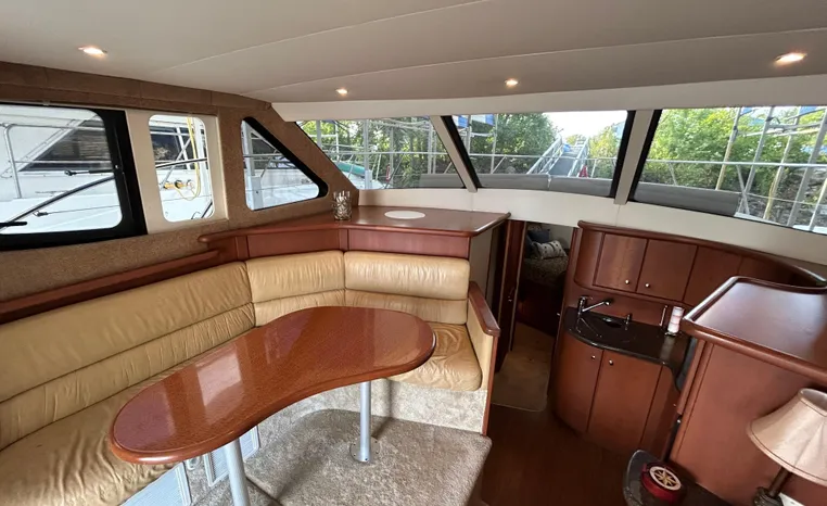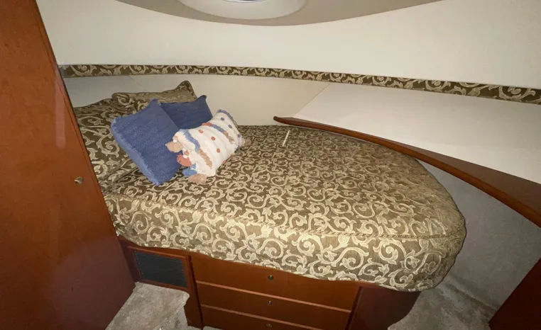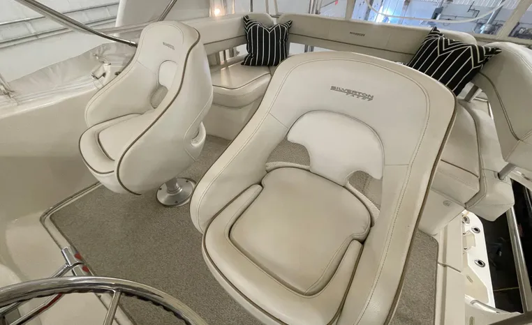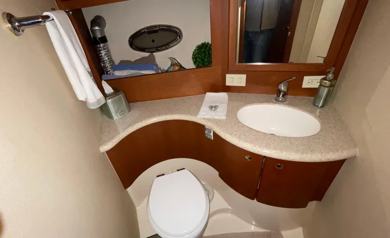 Modern lines and a proven hull grace this comfortable 2-stateroom interior, which features an innovative split head plan with a dry head and vanity to port and a separate stall shower to starboard. The cherry wood salon offers a convertible sofa and plenty of room to entertain. The oversize flybridge with pilot, companion and guest seating rounds out this value-packed model. Silverton engineers along with the help of noted designer Donald Blount & Associates have created an easily driven hull that performs well with smaller displacement engines providing better economy and increased range. Shallow propeller tunnels have lowered the drive angle to increase efficiency and reduce the draft as well. Silverton's evolution of design and 35 years of experience will deliver the best 34 Convertible ever and at a price that will make it irresistible.