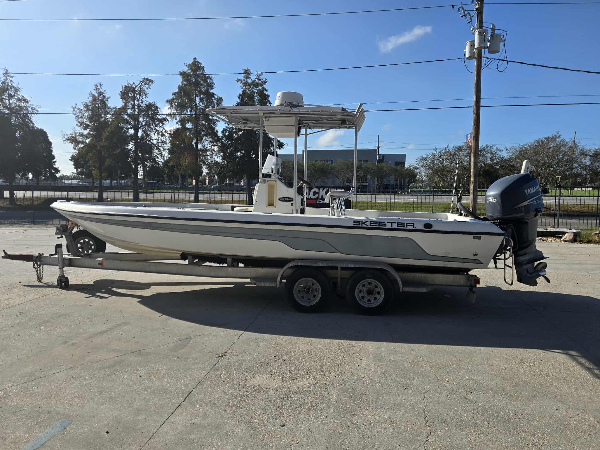 The 2005 Skeeter ZX24 Bay is a 24-foot, all-composite fiberglass bay boat known for its performance in both shallow and choppy waters, typically powered by a 250hp Yamaha outboard. It features a livewell with oxygen tanks, ample rod and tackle storage, a T-top for sun protection, a fish finder, and is designed for comfortable day trips and serious fishing in freshwater and saltwater environments.
