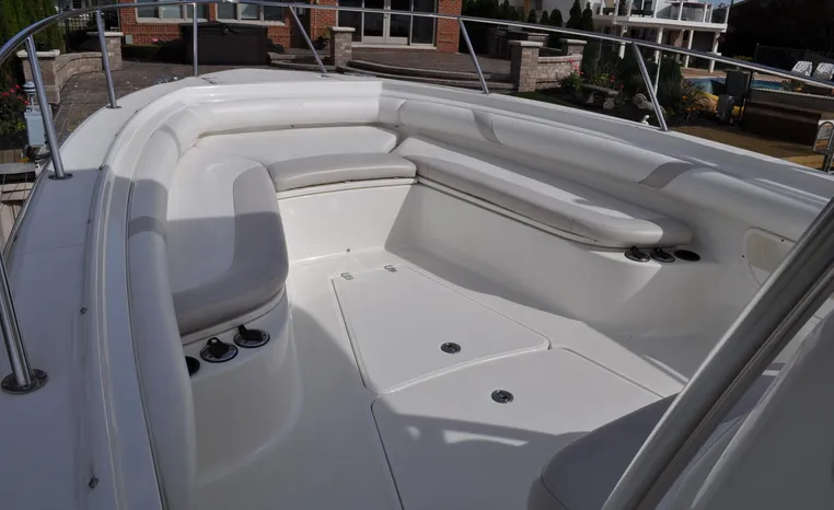 Features Twin Mercury 350-hp 4-Stroke Verado Motors w/Mercury DTS Controls and only 357 hours. (Re-powered in 2021) Notable features include but are not limited to the following: Enclosed Head (Vacuflush) w/Vanity/Sink, Windlass Anchor w/Polished Stainless Steel Anchor, Updated Twin Garmin (Color / Touchscreen) GPS w/Chartplotter, Remote Steering, Mercury SmartCraft, New Fusion Premium Sound System w/Upgraded JL Audio Marine Speaker's & Sub-woofer and a 6 Channel Amp (2024) (Note Helm Mounted Remote Control & Speaker's Mounted to Underside of Hard-top), New Group 31 Batteries (2024) Full Canvas Cover, 2008 Load Rite Aluminum Triple Axel Trailer Included and MUCH more!