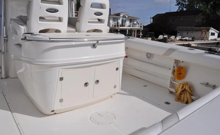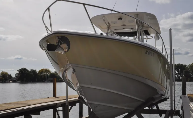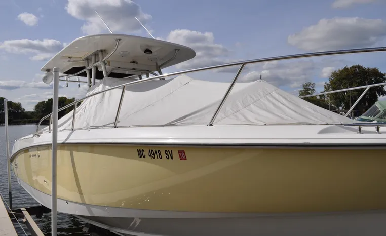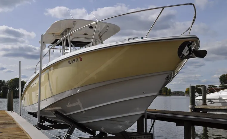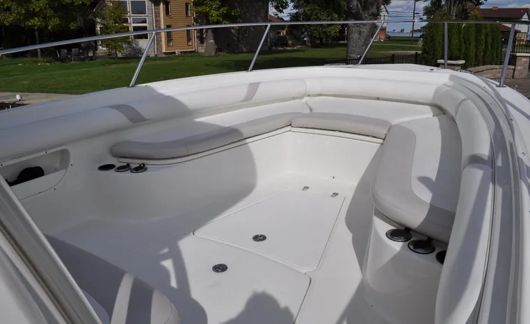 Broker Notes: Optional "Fighting Lady Yellow" Colored Hull. Inside Heated Stored For The Winter, Note: Motors Updated with White 350 Mercury Verados (Updated in 2021 with 2018 Motors). 2008 Load Rite Aluminum Triple Axel Trailer Included. Highly recommended by listing agent!
