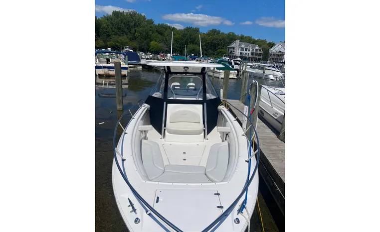 Features Twin Mercury 350-hp 4-Stroke Verado Motors w/Mercury DTS Controls and only 357 hours. (Re-powered in 2021) Notable features include but are not limited to the following: Enclosed Head (Vacuflush) w/Vanity/Sink, Windlass Anchor w/Polished Stainless Steel Anchor, Updated Twin Garmin (Color / Touchscreen) GPS w/Chartplotter, Remote Steering, Mercury SmartCraft, New Fusion Premium Sound System w/Upgraded JL Audio Marine Speaker's & Sub-woofer and a 6 Channel Amp (2024) (Note Helm Mounted Remote Control & Speaker's Mounted to Underside of Hard-top), New Group 31 Batteries (2024) Full Canvas Cover, 2008 Load Rite Aluminum Triple Axel Trailer Included and MUCH more!