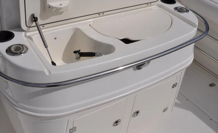 Features Twin Mercury 350-hp 4-Stroke Verado Motors w/Mercury DTS Controls and only 357 hours. (Re-powered in 2021) Notable features include but are not limited to the following: Enclosed Head (Vacuflush) w/Vanity/Sink, Windlass Anchor w/Polished Stainless Steel Anchor, Updated Twin Garmin (Color / Touchscreen) GPS w/Chartplotter, Remote Steering, Mercury SmartCraft, New Fusion Premium Sound System w/Upgraded JL Audio Marine Speaker's & Sub-woofer and a 6 Channel Amp (2024) (Note Helm Mounted Remote Control & Speaker's Mounted to Underside of Hard-top), New Group 31 Batteries (2024) Full Canvas Cover, 2008 Load Rite Aluminum Triple Axel Trailer Included and MUCH more!
