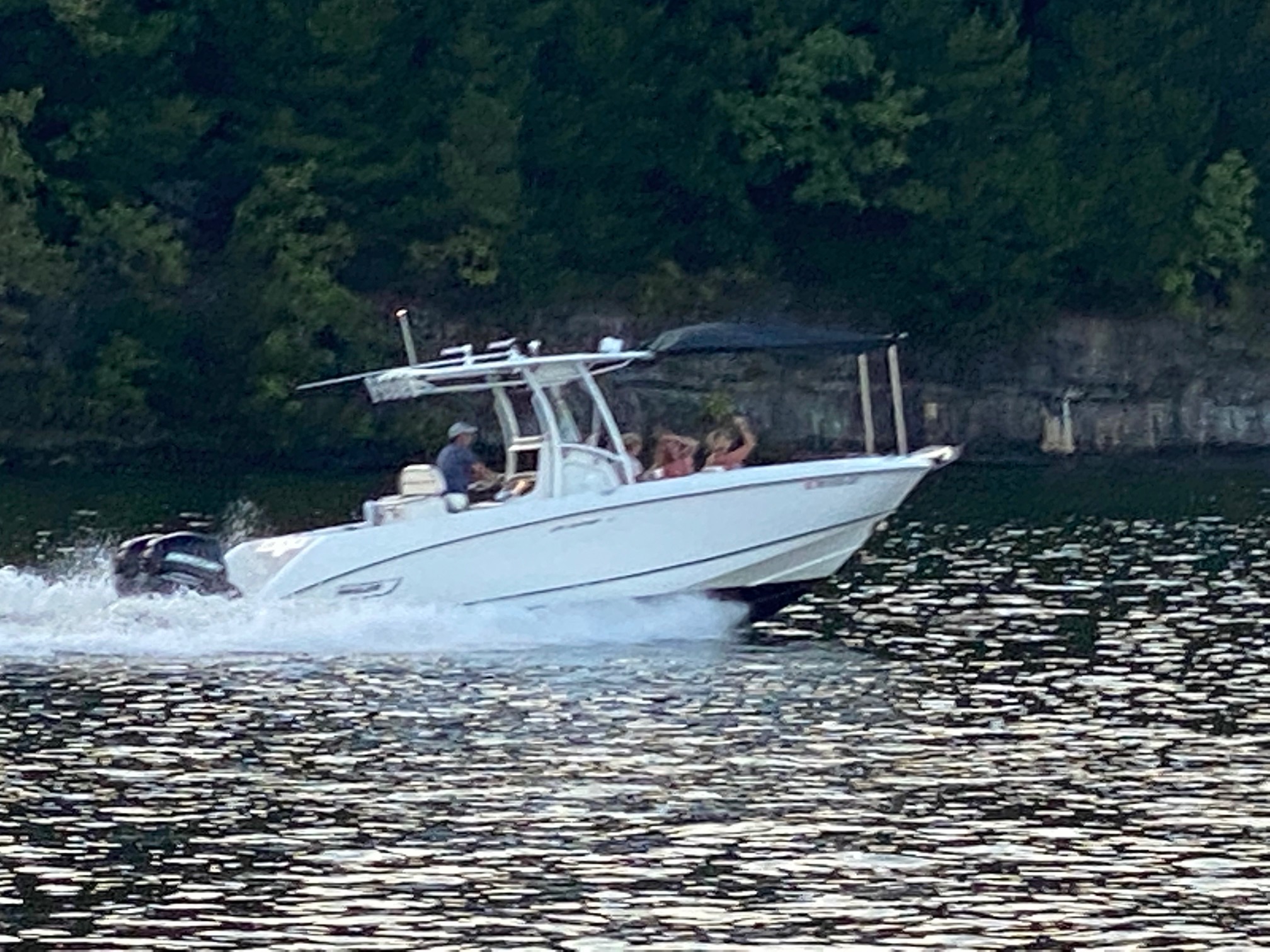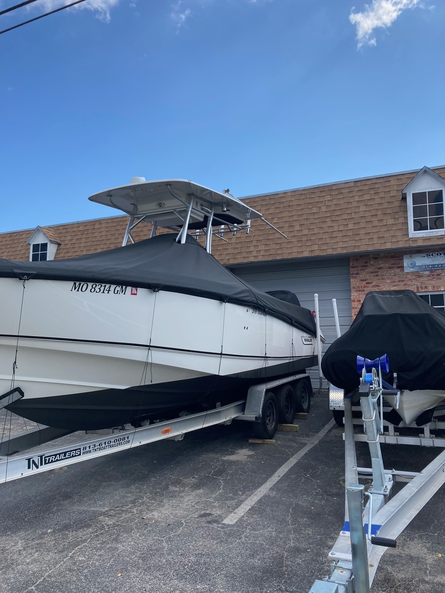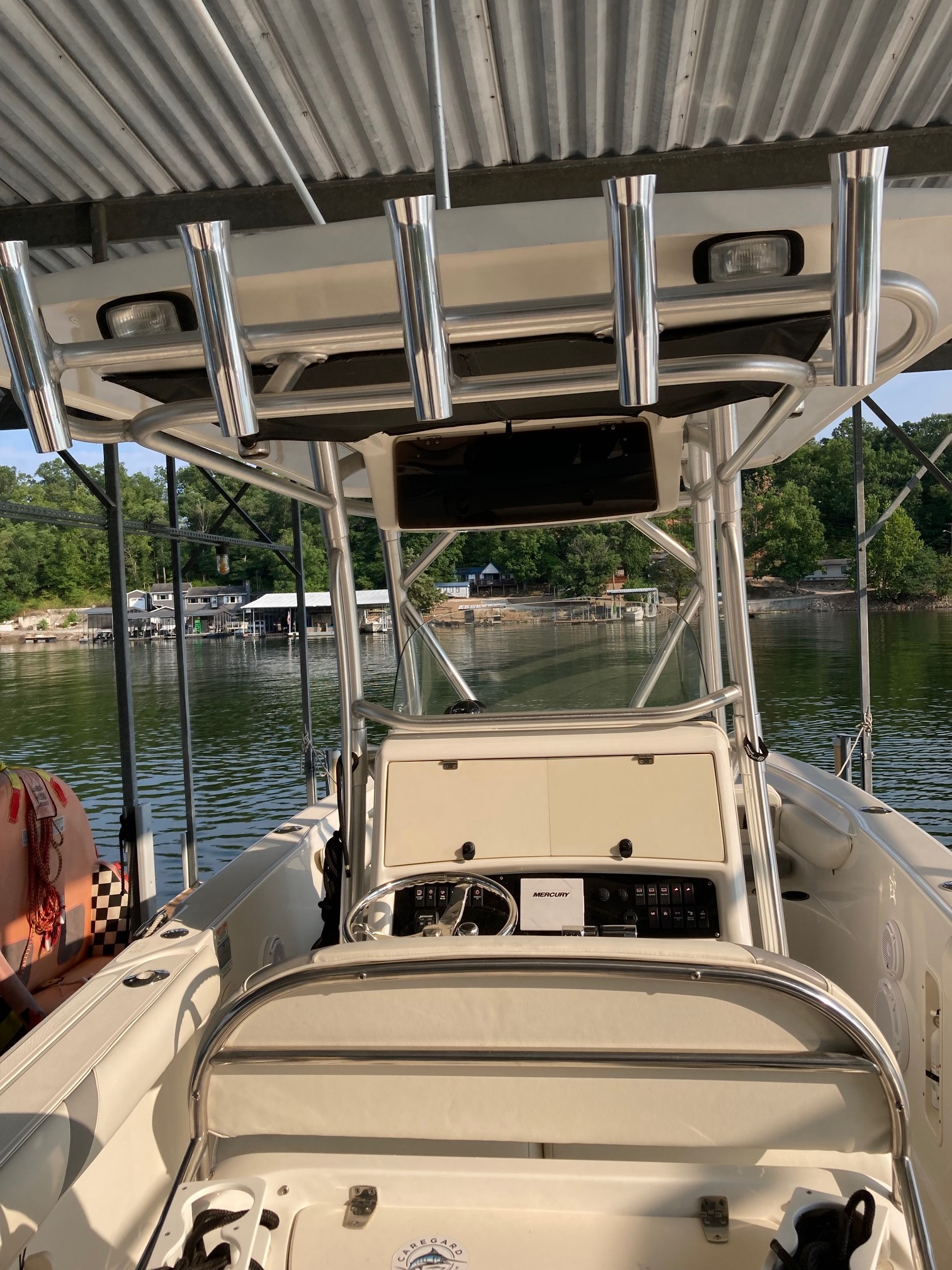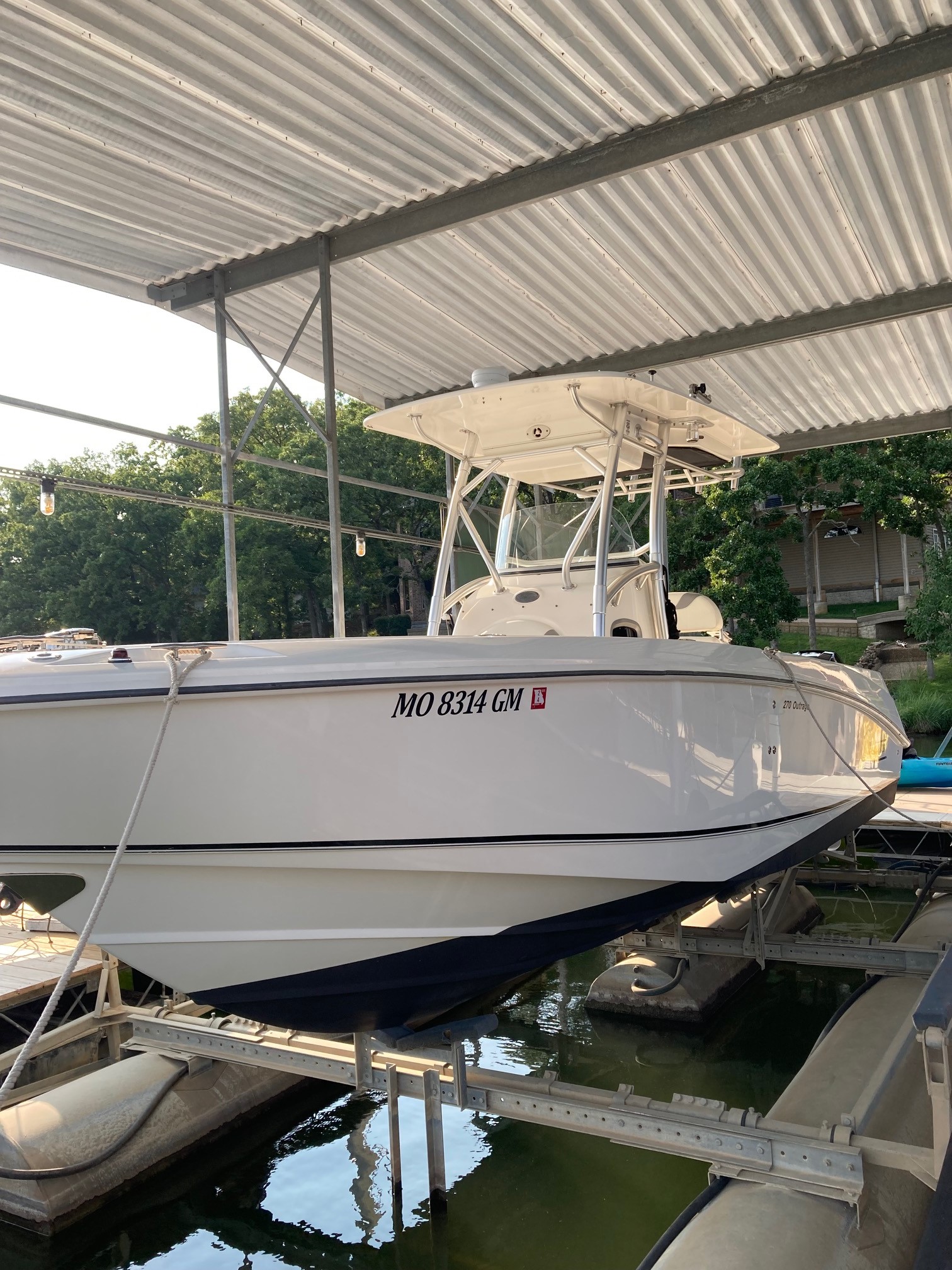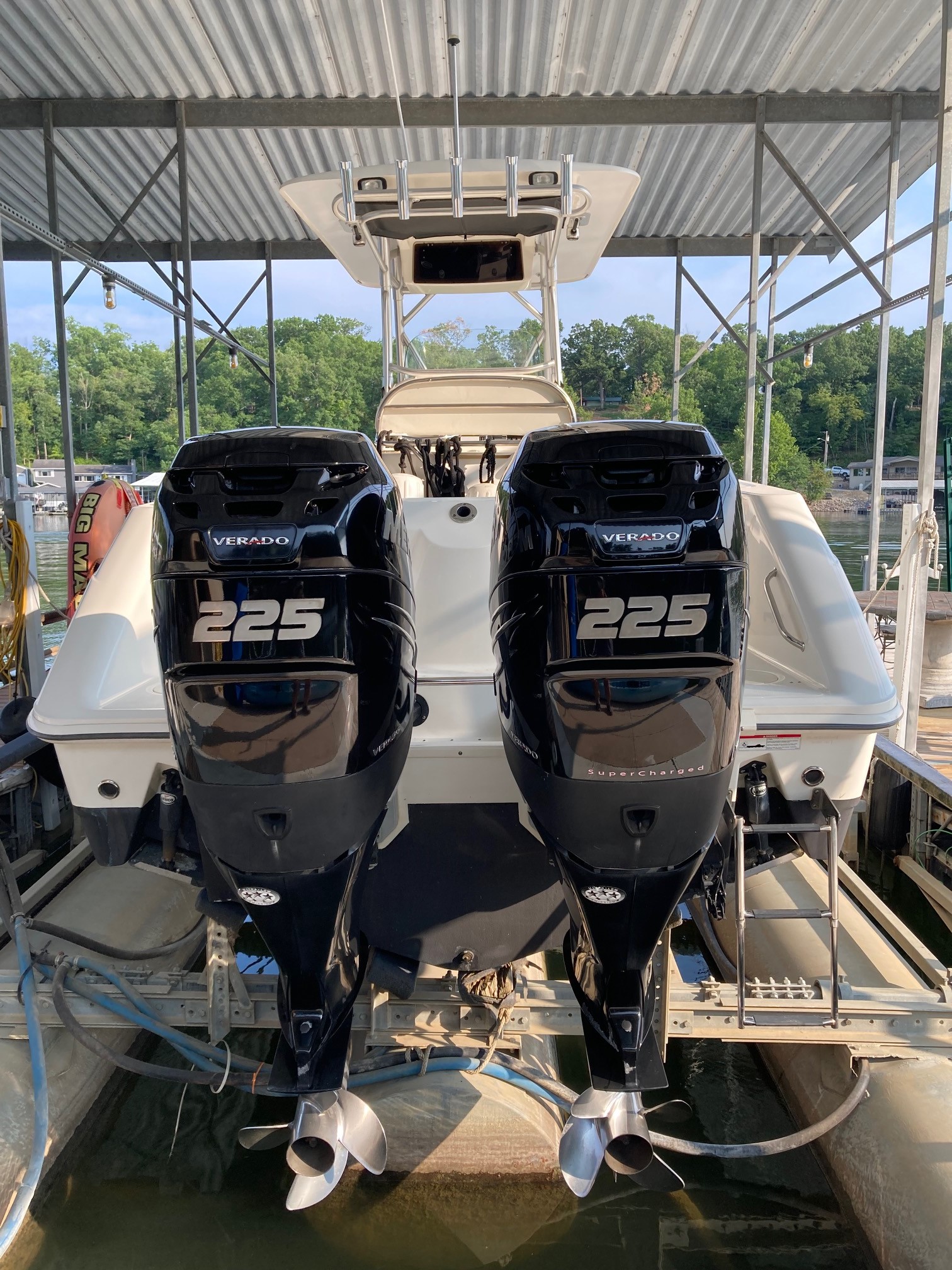 From its low-profile bow rail to its integral boarding platform, the Boston Whaler 270 Outrage incorporates sleek lines plus a host of fishing-friendly features and comfort options. This remarkable boat includes three in-deck insulated storage / fishboxes, a lockable console (including an enclosed portable head with pump-out and freshwater sink), locking bow rod storage and a lighted 23-gallon transom livewell with raw-water fill. There’s a total of 10 rod racks and 11 rod holders located throughout the boat. The 334-quart in-deck bow storage compartment features a drain and a pump-out so it can double as a third insulated fishbox. The leaning post features two rod holders, a well-equipped bait prep station and a stainless steel grab rail, with a 94-quart cooler below. Versatile seating includes two bow bench seats with standard removable cushions; a leaning post with a removable backrest, folding footrest and twin hinging seat bases for convenient storage access; a molded seat in front of the console; and a convenient stern bench seat that folds into the transom. Trailer included.