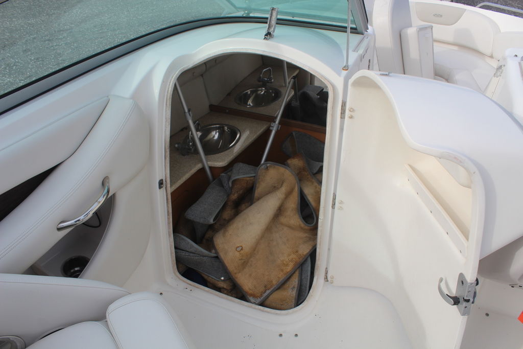 A notable feature of the Chaparral 256 SSi is its enclosed head compartment, providing privacy and convenience for longer outings — a feature not always found in boats of this size. The helm is well laid out with clear instrumentation, supportive seating, and intuitive controls for an enjoyable driving experience.