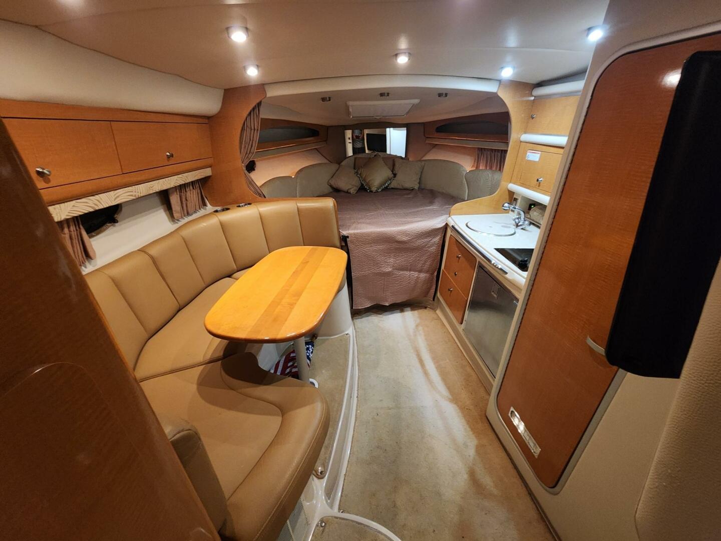 Chaparral’s attention to detail is remarkable. The 290 offers an impressive range of standard features and customizable options, including a 10,000 BTU air conditioning system, an electric cabin table, rod holders, a remote spotlight, a generator, and a sun lounge deck pad. Thoughtful touches like vented aft cabin windows, solid surface countertops, a cedar-lined closet, and a lockable translucent cabin door set it apart. The helm features dual wide flip-up bolster seats and a tilt steering wheel for comfort and control, whether seated or standing. With a length of 29 feet and a 10-foot beam, the spacious cockpit includes wraparound seating, a wet bar, and a stowable transom bench. Below deck, the cabin comfortably sleeps six, with a forward V-berth, a convertible dinette, and an aft double berth, complemented by solid surface countertops and a cedar-lined closet. Powered by twin Volvo Penta 5.0 GXI-F engines, it reaches a top speed of 35 knots and cruises efficiently at 25 knots, making it perfect for boating enthusiasts. Twin Volvo Penta 5.0 GXi enginesNew manifolds and risers Kohler 5kW Generator Cabin Heat and Air Conditioning Swim platform with boarding ladder Isinglass enclosure - excellent condition Cockpit cover Snap-in cockpit floor Cockpit wet bar with sink and storage Stowable transom bench seat Radar arch with overhead lights Companion bench seat Double-wide helm seat with bolsters Trim tabs VHF Radio Lowrance Depth Finder and GPS Dinette seating with table Galley with cabinet storage, microwave oven, single-burner electric stovetop, and refrigerator Forward V-berth (converts to dinette-style seating) Mid-cabin (full-size berth) Head compartment with sink, Vacu Flush head, and mirror Walk-around deck designGenerator is currently not operatingCall today for more details