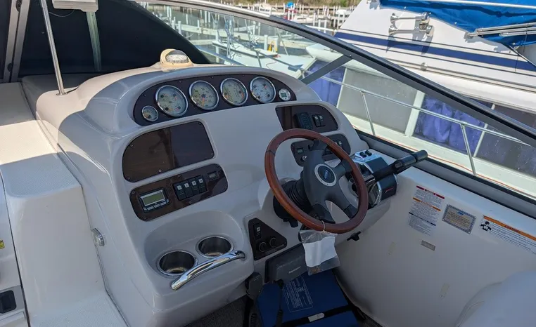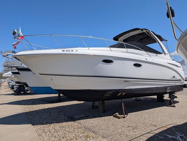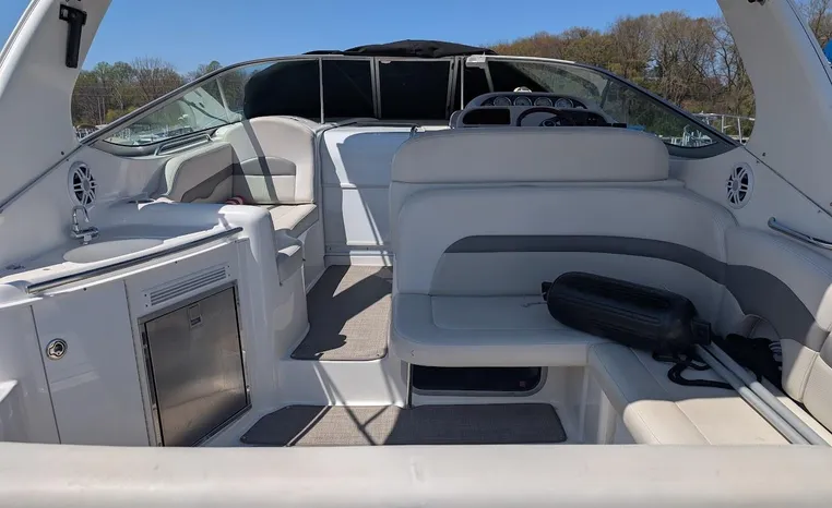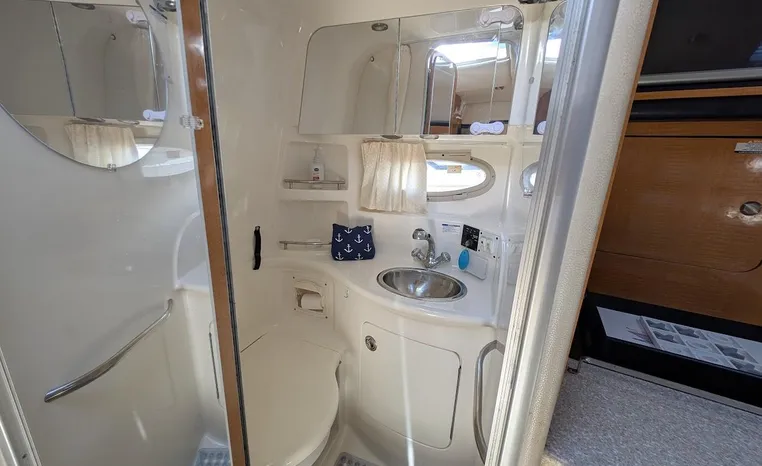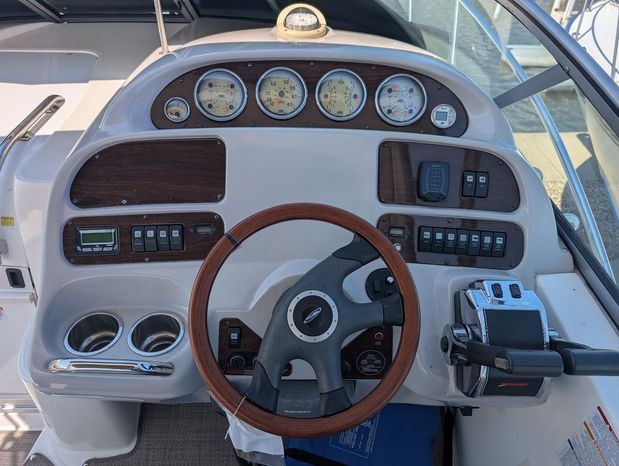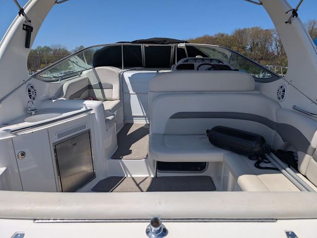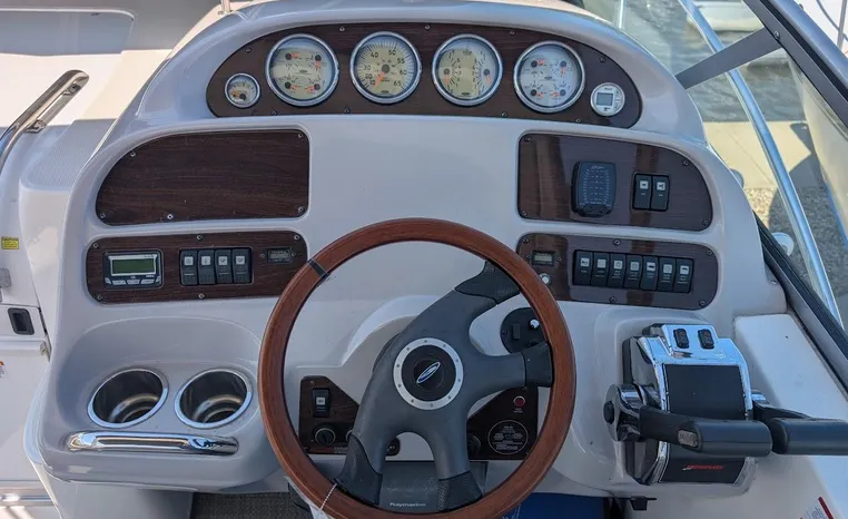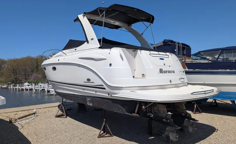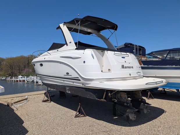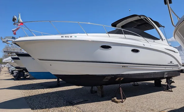 This 2006 Chaparral 310 Signature is a sleek and luxurious cruiser designed for thosewho appreciate both performance and comfort on the water. With a length overall of 33 feet and a beam of 10 feet,this vessel offers ample space for entertaining and relaxation. Its elegant design features a spacious cockpit withwraparound seating, a wet bar, and chaise lounge are perfect for enjoying the sun and the lake breeze. Below deck,the cabin is appointed with high-quality materials and finishes, including plush upholstery, cherry wood cabinetry,Corian countertops and premium fixtures. Accommodations include a forward double berth, a mid-cabin berth, a well equippedgalley, and a full head with shower. Powered twin mercury 5.0 MPI engines with Bravo 3 Outdrives, the Chaparral 310Signature delivers performance and handling, making it ideal for weekend getaways or extended cruising adventures.