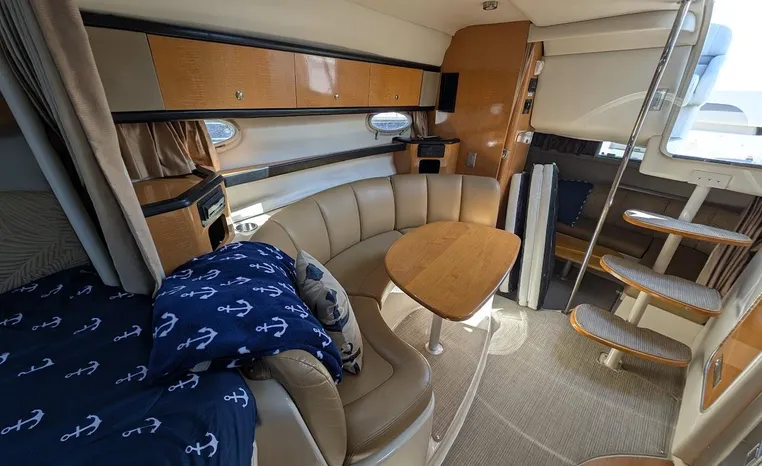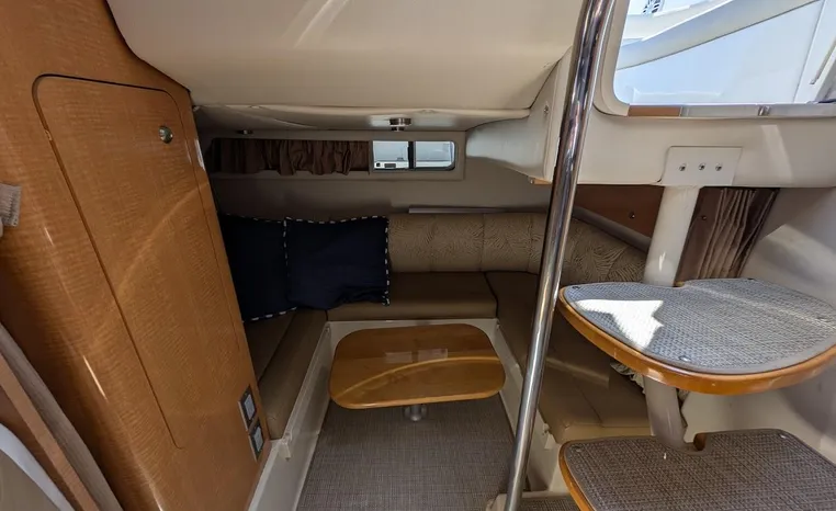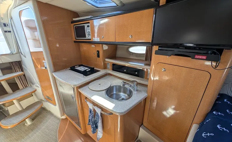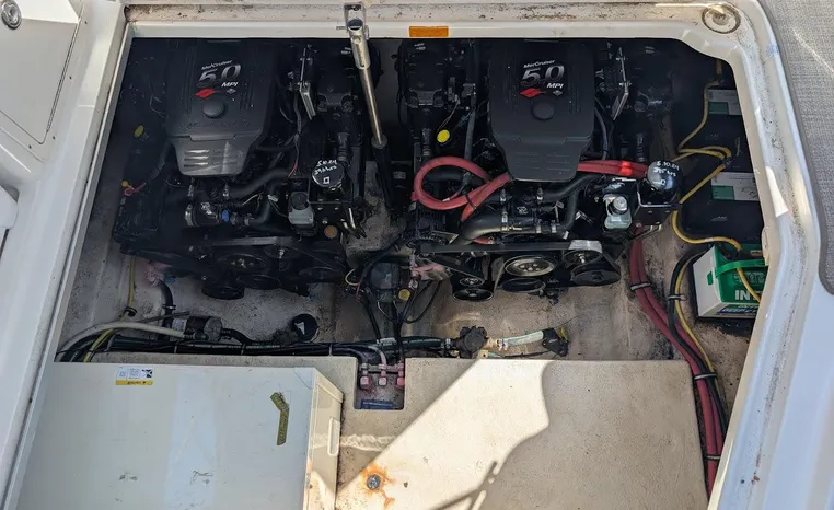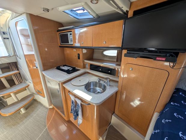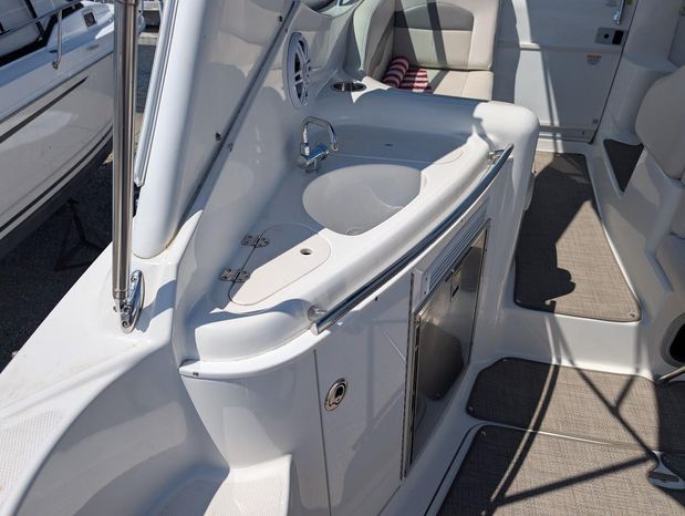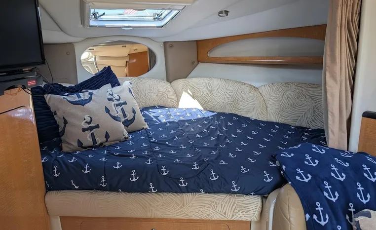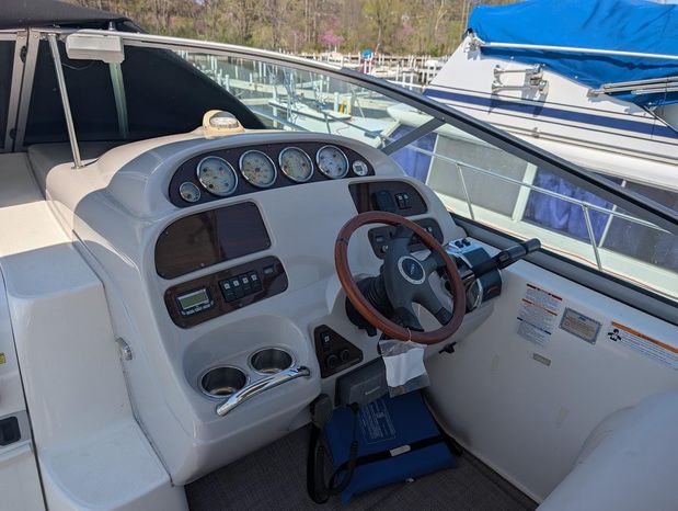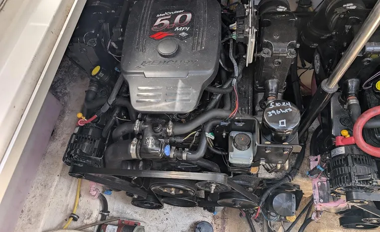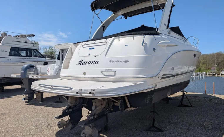 This 2006 Chaparral 310 Signature is a sleek and luxurious cruiser designed for thosewho appreciate both performance and comfort on the water. With a length overall of 33 feet and a beam of 10 feet,this vessel offers ample space for entertaining and relaxation. Its elegant design features a spacious cockpit withwraparound seating, a wet bar, and chaise lounge are perfect for enjoying the sun and the lake breeze. Below deck,the cabin is appointed with high-quality materials and finishes, including plush upholstery, cherry wood cabinetry,Corian countertops and premium fixtures. Accommodations include a forward double berth, a mid-cabin berth, a well equippedgalley, and a full head with shower. Powered twin mercury 5.0 MPI engines with Bravo 3 Outdrives, the Chaparral 310Signature delivers performance and handling, making it ideal for weekend getaways or extended cruising adventures.