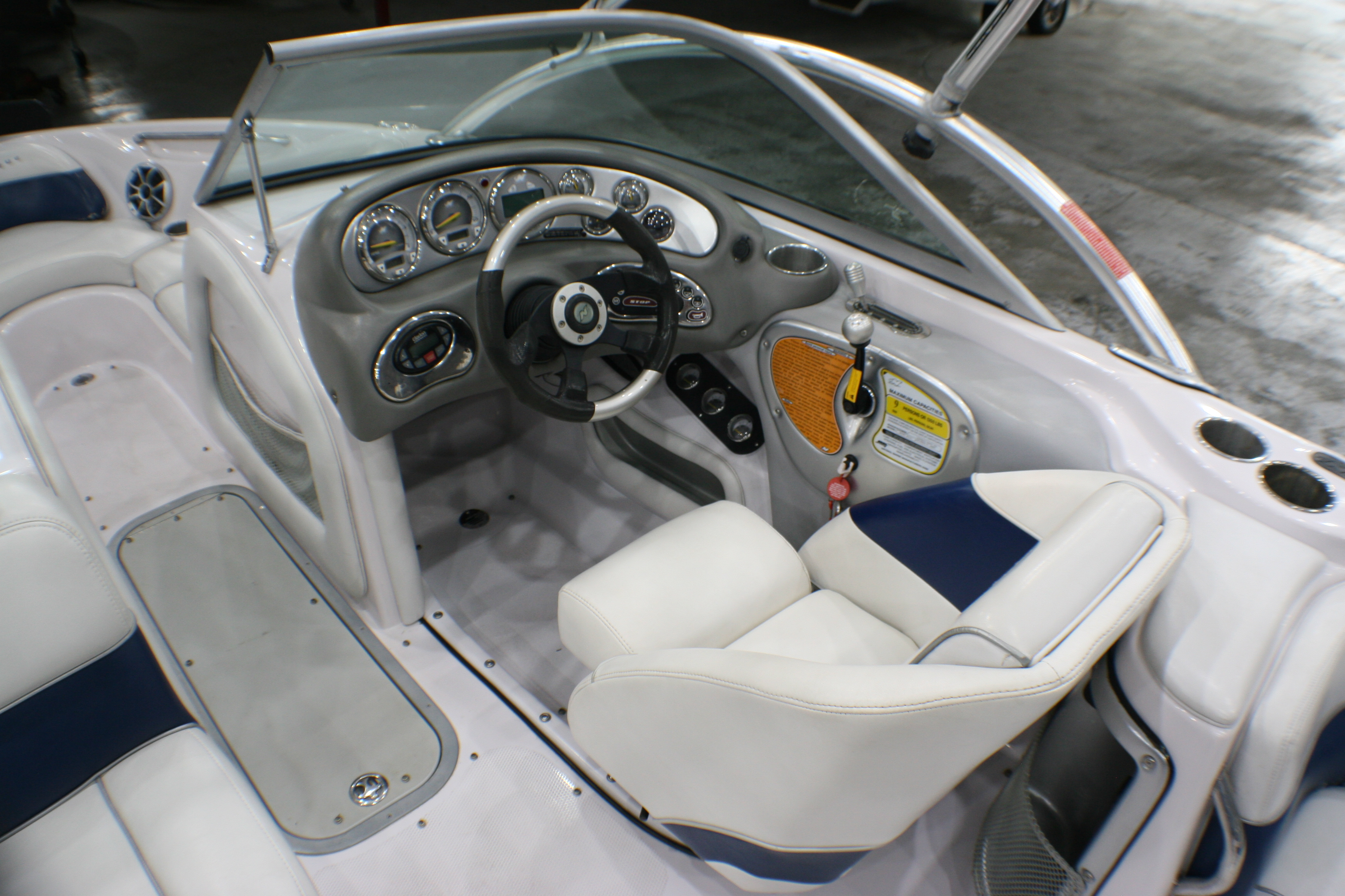 This particular boat has a PCM 330 hp and a killer sound system. So, if you’re a family with hard-core skiers and wakeboarders, it is a perfect boat for you!