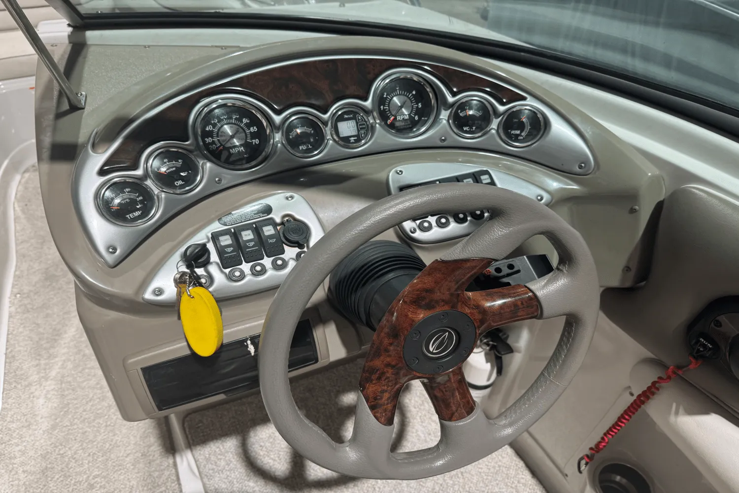 Additional features and options Wakeboard Tower and Bimini Top: Enjoy watersports with the optional wakeboard tower andbimini top, which also provides shade on sunny days. Advanced Helm: Navigate with ease using the tilt steering, depth sounder, tachometer, and optionalGarmin GPS unit, among other detailed helm work. Integrated Storage: Discover plentiful storage options, including large under-seat compartments in the bow, storage in both consoles, and a glove box. The 2006 Crownline 220 LS is more than just a boat; it's an invitation to create unforgettable memories on the water.