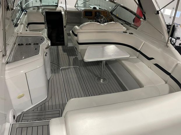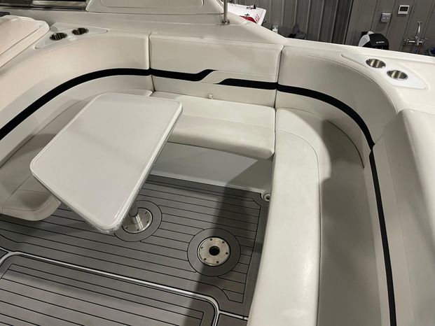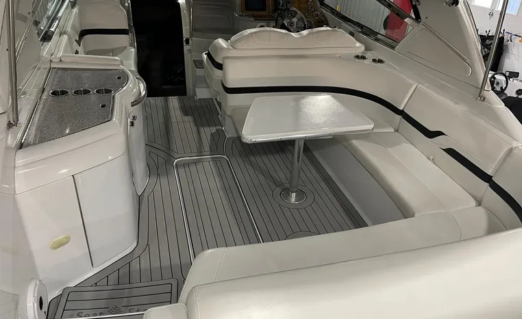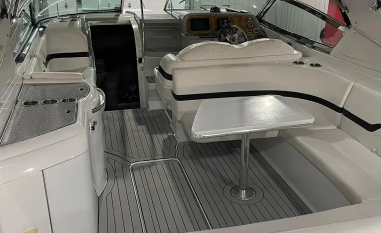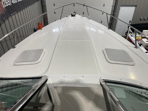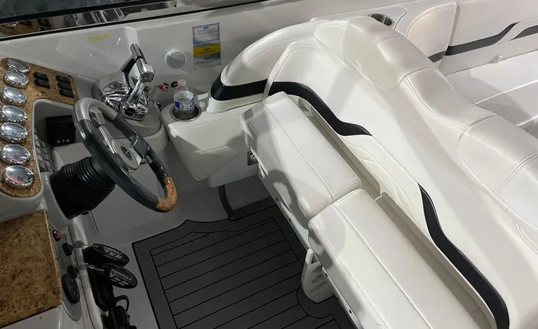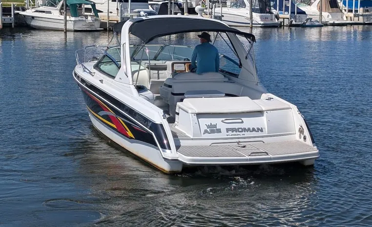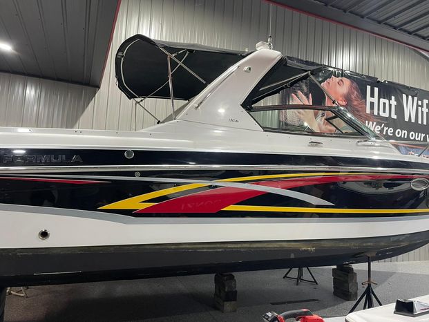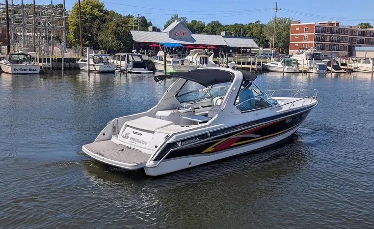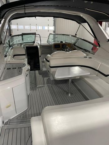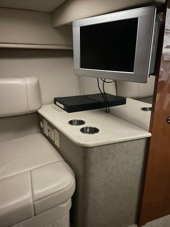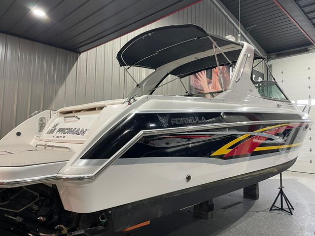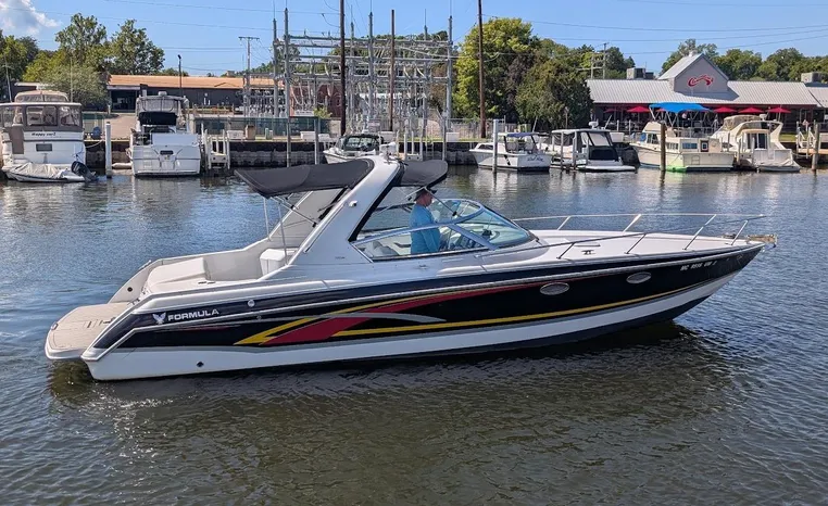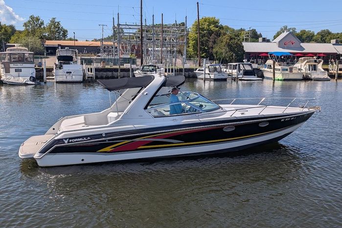 If you are looking for a sporty, great performing, hot looking express cruiser, look no further! This Formula 330 Sun Sport is the perfect fit for your family's summer fun! Nicely equipped for a fun day on the water or an overnight, this boat has Air Conditioning with Reverse Cycle Heat, a 5.0 KW generator, and 30 amp shore power. Comfortable accommodations below for a cruising couple including fresh hot and cold running water, a head with holding tank, a refrigerator, microwave, a flat screen TV, and Kenwood Stereo sound! The boat appears to have lived a cushy life in freshwater as well. The list of features below is by no means exhaustive: