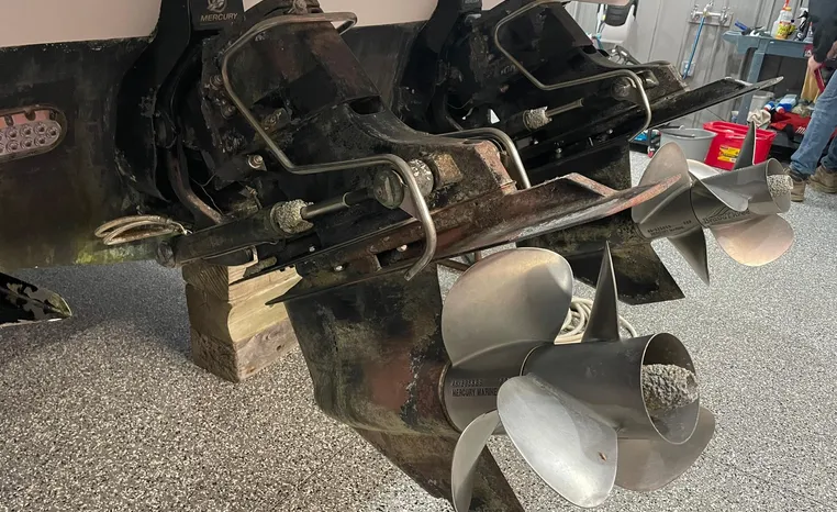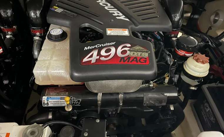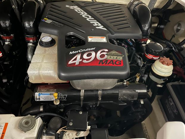 Fresh-water cooled Twin Mercruiser 496 Mag DTS with Bravo III drives and 375 HP each