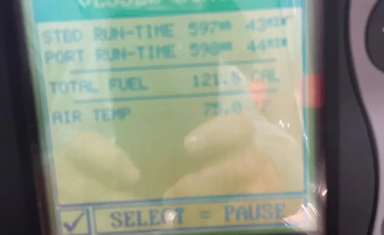 Hour meters on Mercury Smart Craft Display show 598 & 599 hours respectively