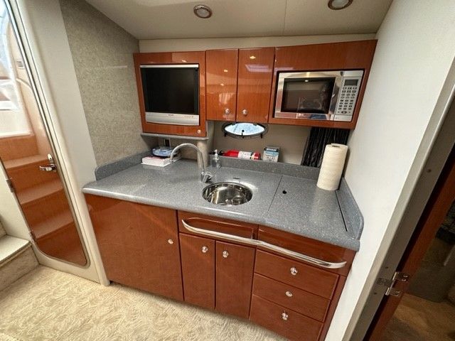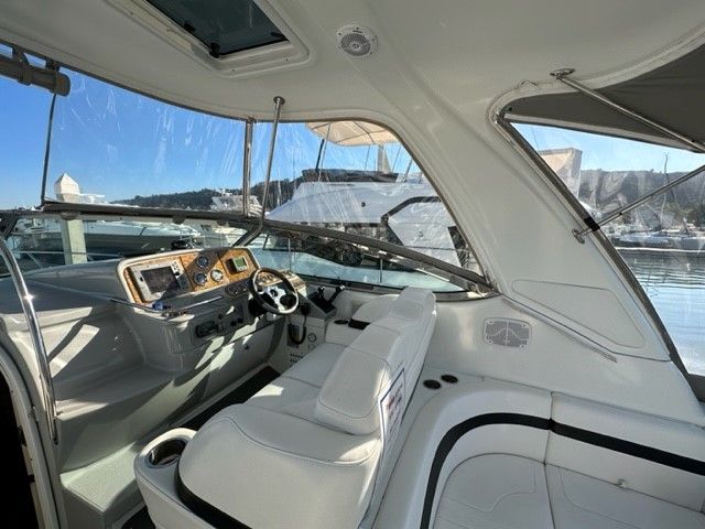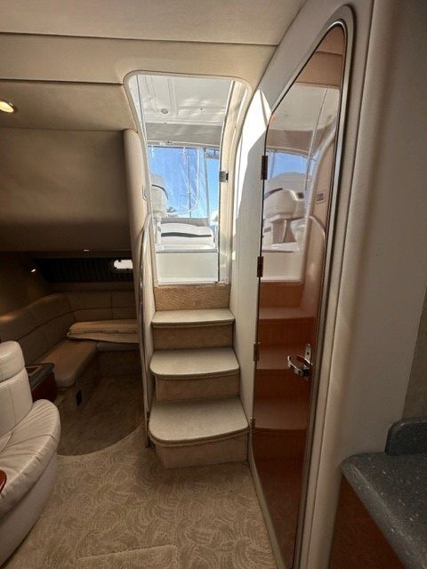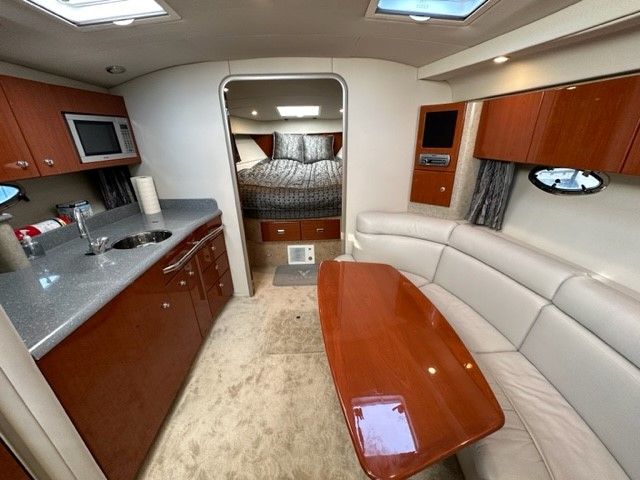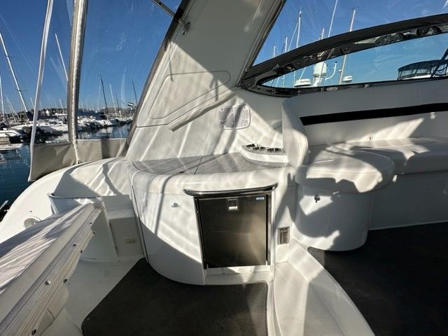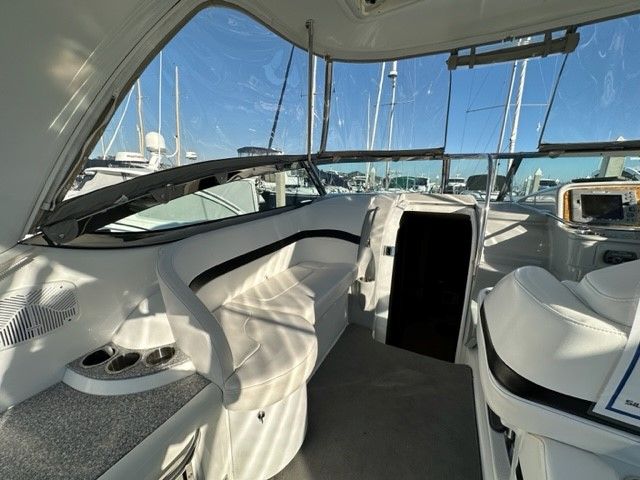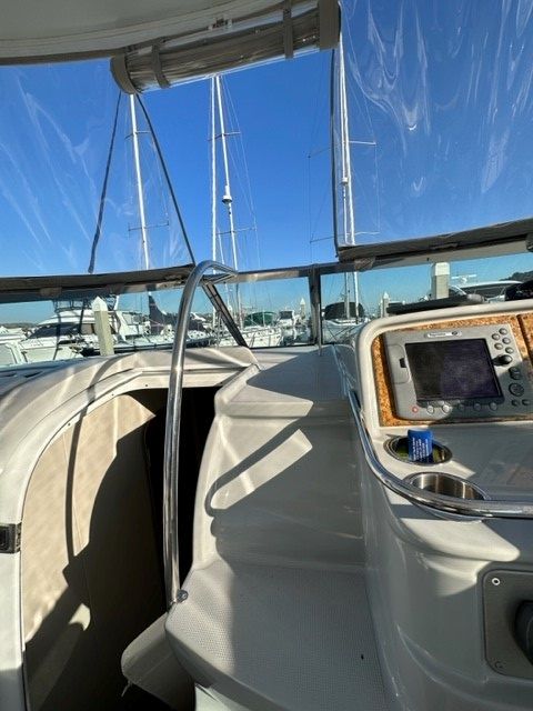 A very versatile boat for family outings/overnighting and entertaining. A large cockpit that can easily seat (12) with an enclosed hardtop. Below decks, there is excellent headroom and spacious accommodations. Scheduled mid-October for new bottom paint and full engine service, including the drives. Only 335 engine hours.Fully detailed so she sparkles; a must see!