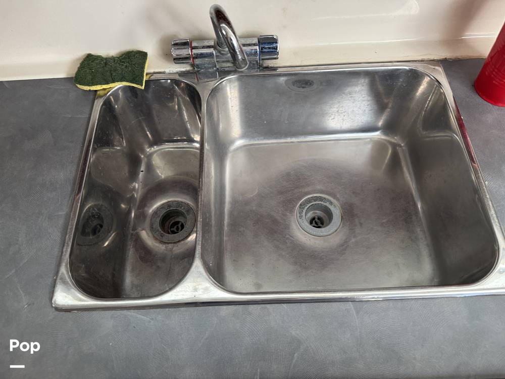 The interior is seamlessly accessible from the cockpit, impresses with its smart layout and cozy comforts. The salon features a large table comfortably seating four guests, expanding to accommodate eight for sociable dining or game nights. Descend just a few steps from the salon to find the thoughtfully arranged galley with ample dry goods storage. The original propane-driven refrigerator, operating quietly on ammonia-cycle technology rather than a compressor, has been removed, but space remains to replace it.