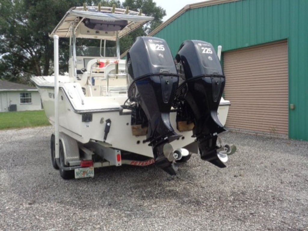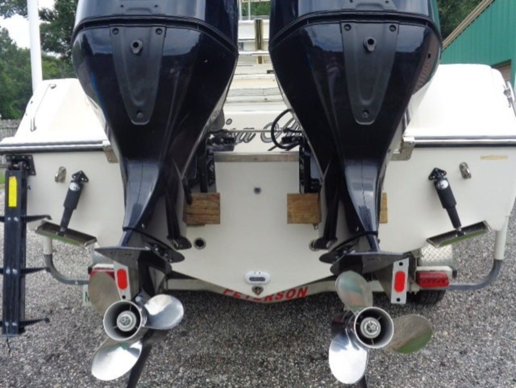 I repowered the boat in March of 2021, I replaced the orginal Honda BF150s with almost 900 hours on them, installing a pair of Tohatsu/Honda BFT225's, which was the optional power for the boat back when built. These motors come with a full five year warranty that can be transferred to the new owner. At the time of the repower I had a Simrad AP44 autopilot installed. They also installed four new transom thru hulls from Gem. The fuel tank was then drained and flushed.