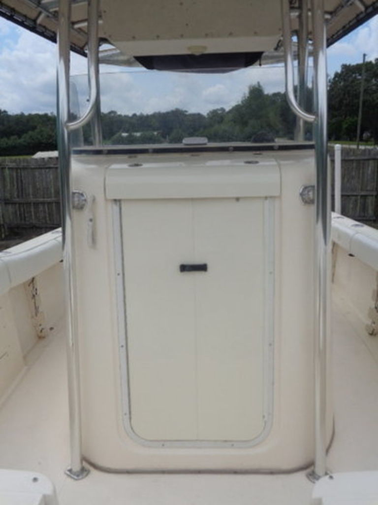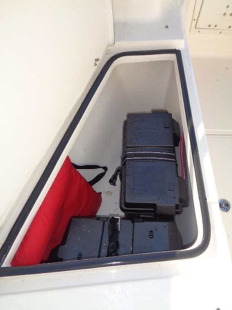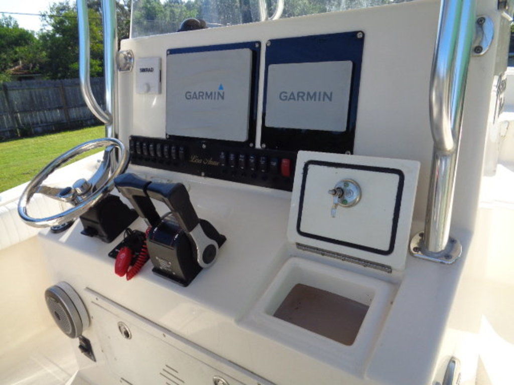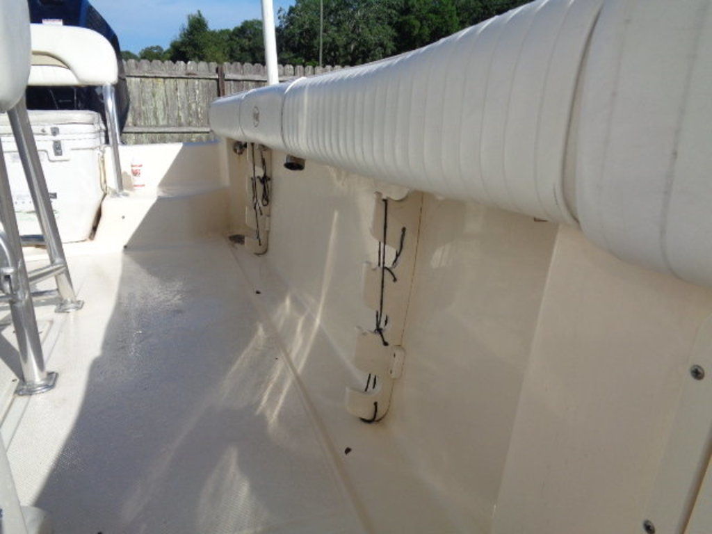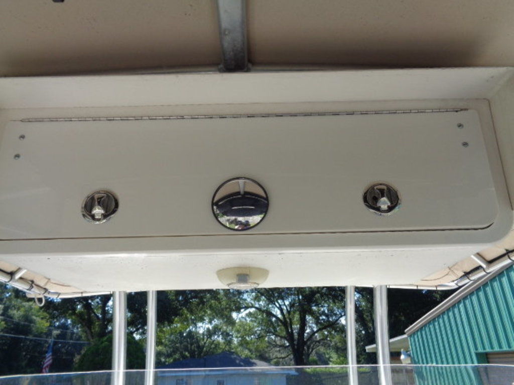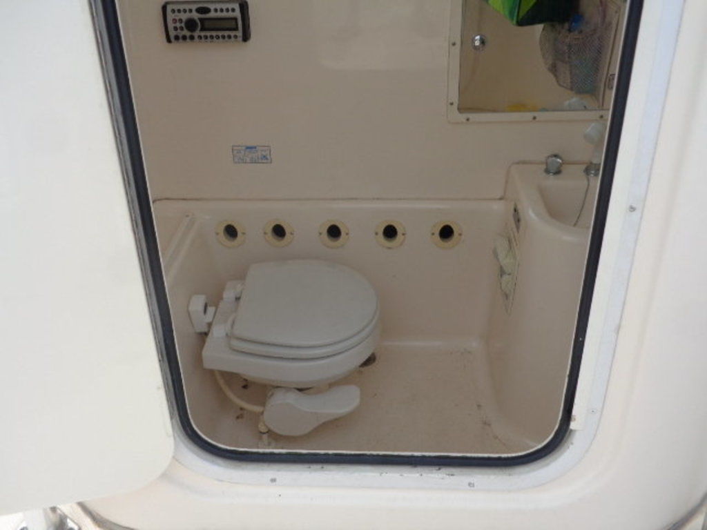It came stock with a SeaLand flushable head with a 20 gallon holding tank and overboard macerator. This unit was completely rebuilt in May with a new pump, seals and pressure relief valve for over $600. The system works perfectly and will be one of the reasons your lady will enjoy a day on the boat! Other features are a pair of tackle storage boxes, 20 gallon rear livewell, 15 gallon fresh water tank, 23 rod holders including another four in the head that can be locked. Overhead console with VHF radio, three spreader lights and switches. Clarion radio and four working speakers. 202 qt rear seat/fish box. The front fish box is used for below deck storage and the macerator pump has been disconnected. It has forward seating and the cushions were never used as long as I have owned the boat. All of the coaming pads have been replaced at various times over the years. Most including the helm seat are in very good shape.