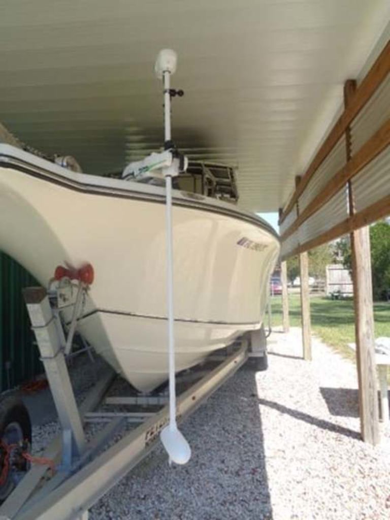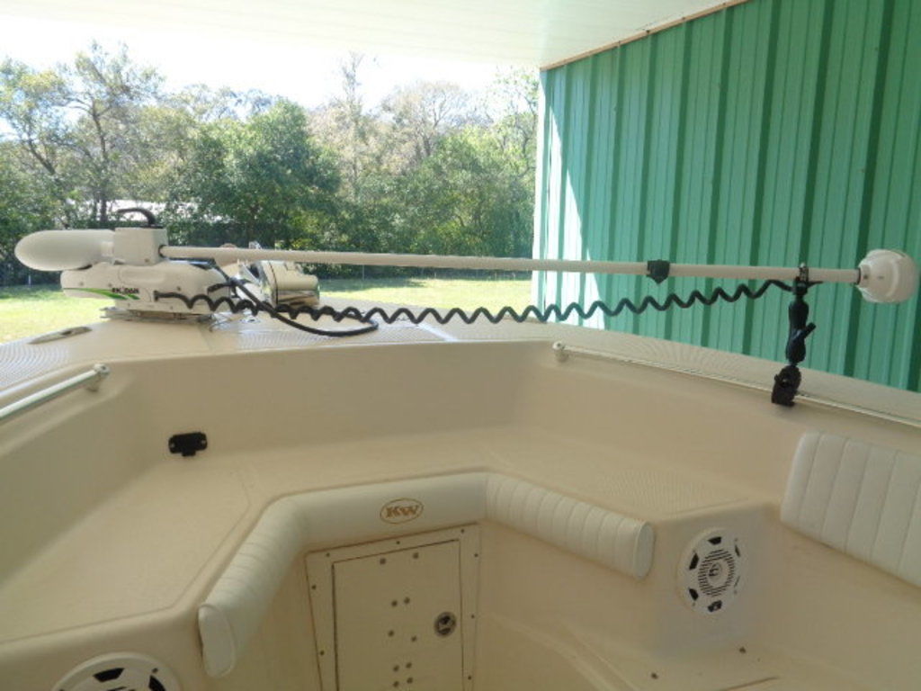 I have continued to improve and update this rig. My first project was to install a Lewmar ProFish windlass. It has a 22lb stainless claw anchor and 300' new 1/2" rode with 15' galvanized chain. In January 2021 I installed a new 96" Rhodan along with an upgraded Shuttleslide. the three Duracell AGM's are group 31's using a new Yandina Trollbridge combiner to charge them when on house power or from one of the Tohatsus when under way. It works flawlessly and after a day of fishing I use about 20-25% of battery power.