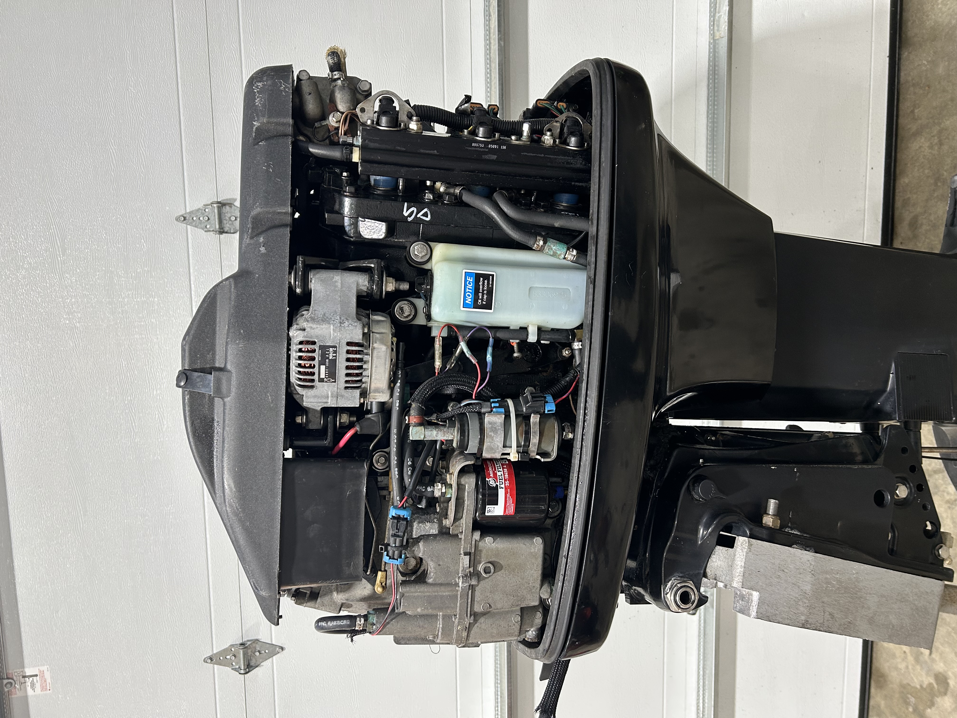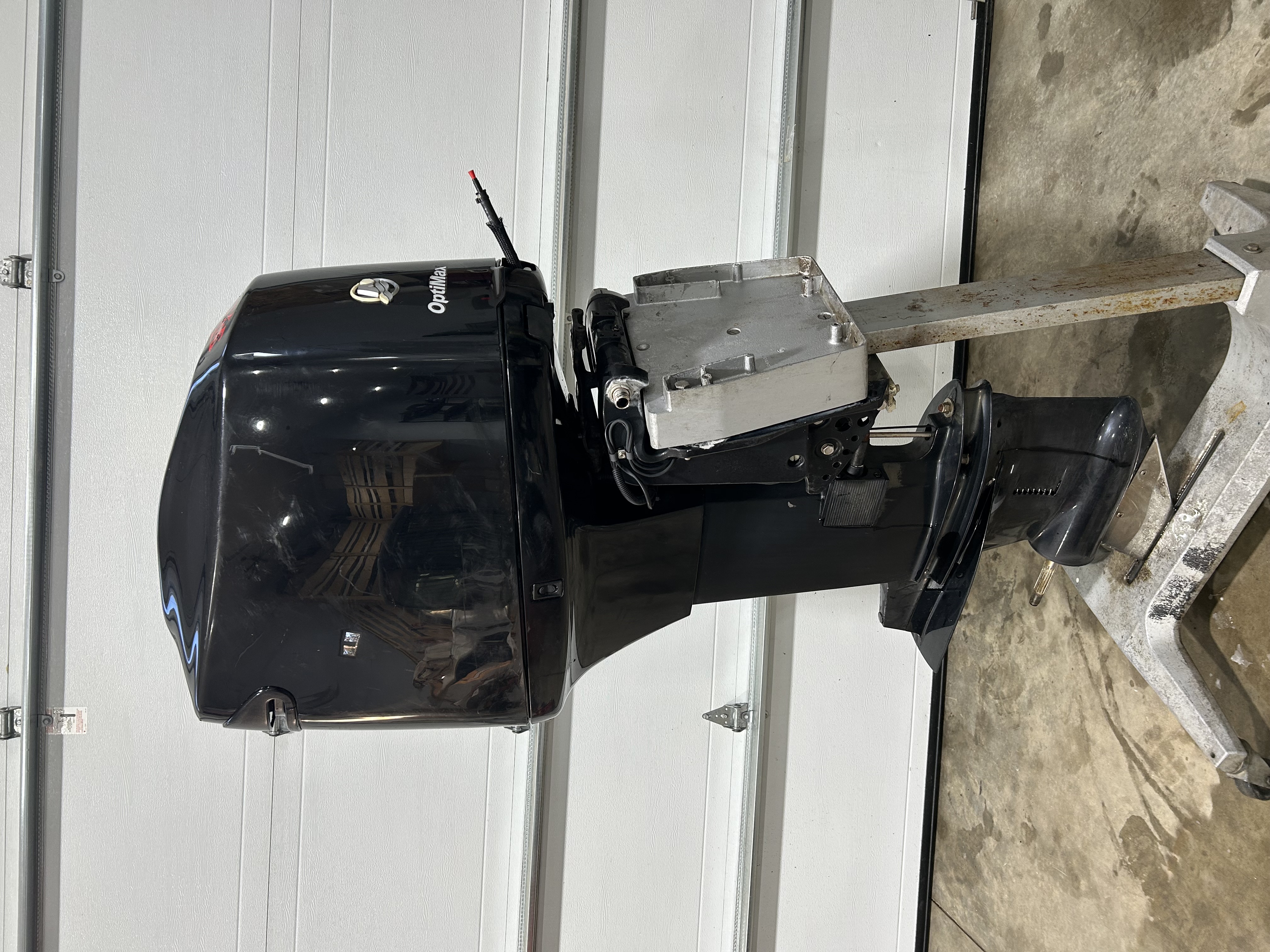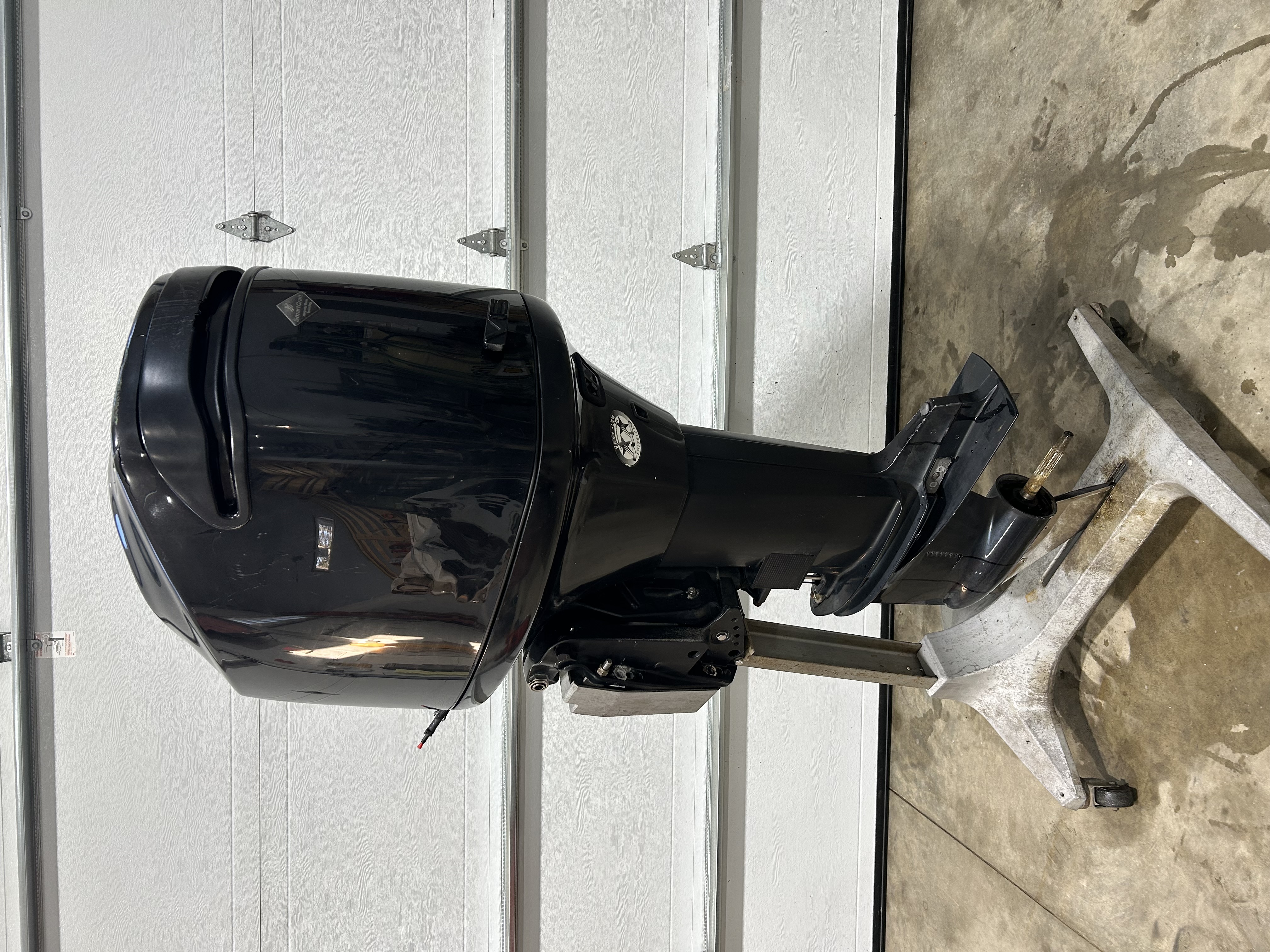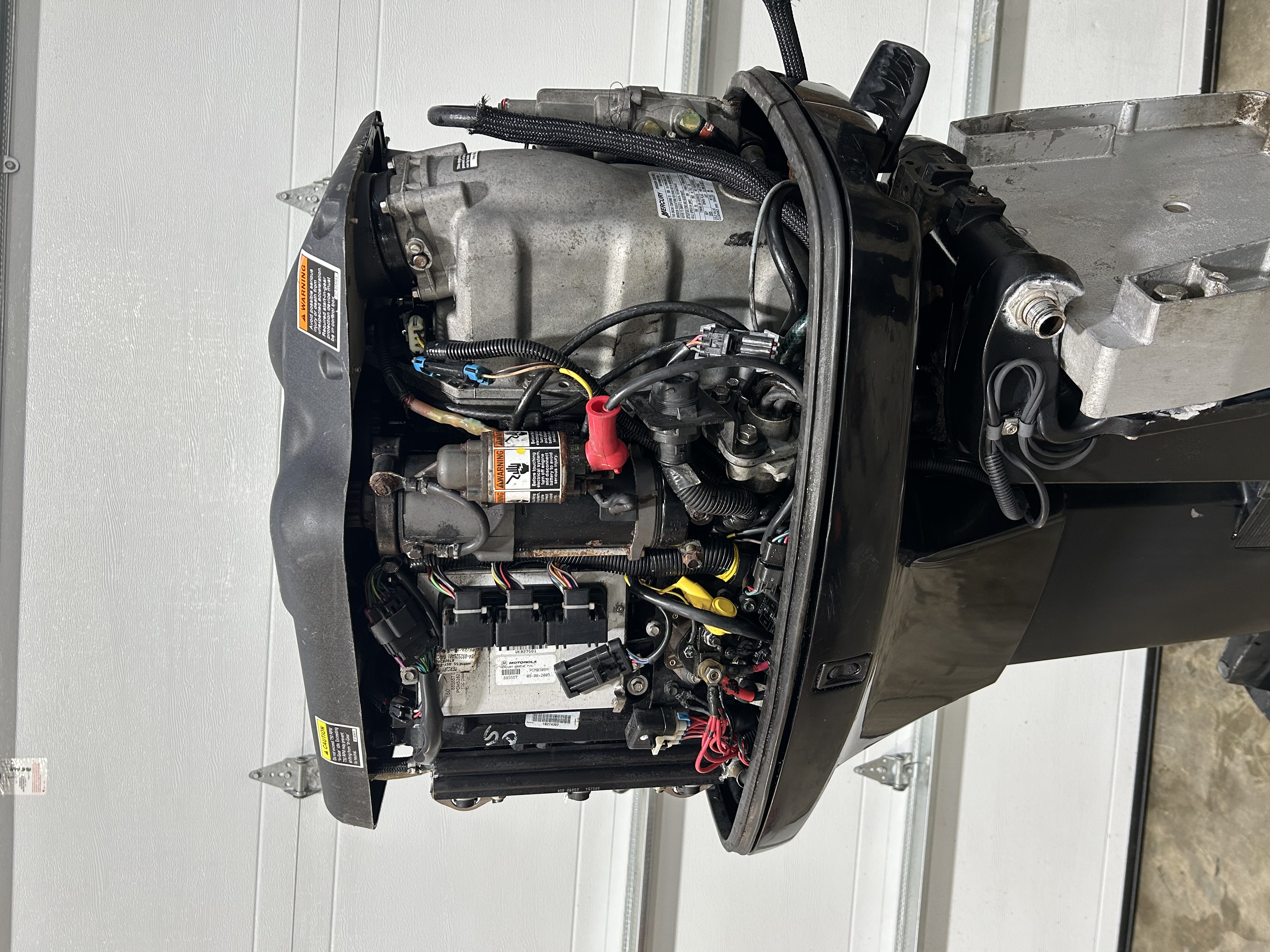 2006 mercury 150 HP optimax motor 25” XL shaft. Motor runs great and has good compression! Top motor cover does have some cosmetic damage. I have it on a stand and can run it for any serious buyers. Motor run time is 1,604.0 hrs