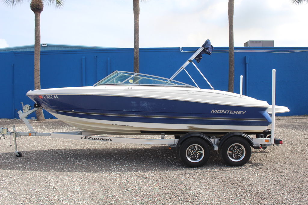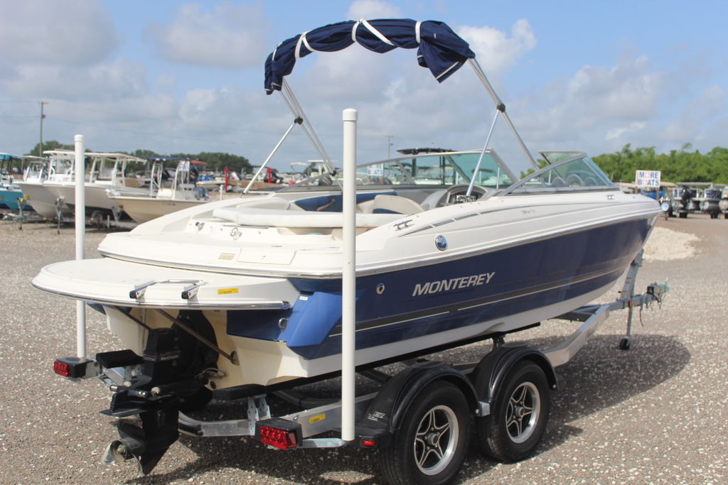 The Monterey 194 FS (often standing for "Sport" or "Family Sport") boasts a sleek and attractive design that looks great on the water. Its fiberglass hull is engineered for a smooth and stable ride, confidently handling typical lake chop while delivering responsive and predictable handling. The 19-foot length strikes an excellent balance, offering enough space for a small group to enjoy themselves without being cumbersome to trailer, launch, or store. This makes it an ideal option for those who value both performance and practicality.