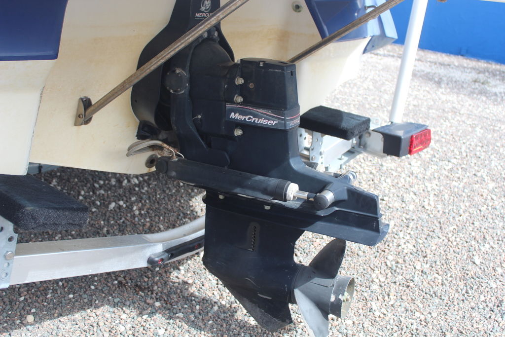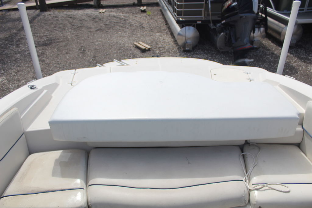 At the stern, this Monterey 194 FS is propelled by a trusted MerCruiser I/O engine. MerCruiser is a leading name in marine propulsion, renowned for its proven reliability, strong acceleration, and consistent power delivery. The I/O configuration provides several benefits: a clean transom for easy and safe access to the water (perfect for swimming, tubing, or watersports), and a lower center of gravity which contributes to the boat's excellent stability and nimble handling. This engine package (specific horsepower would depend on the exact MerCruiser model, common for this size would be a 4.3L V6) provides ample power to get the 194 FS on plane quickly, cruise efficiently, and pull skiers or wakeboarders with ease, ensuring a fun-filled day for everyone.
