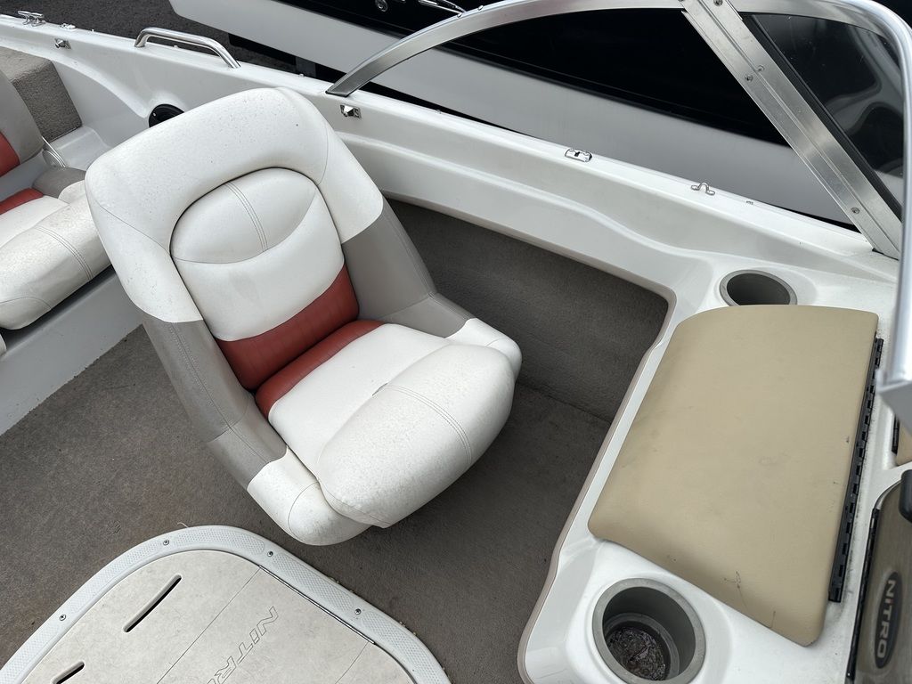 This is a used 2006 Nitro 189 Sport fishing boat. It measures 19'4" in length with a beam of 7'9". The boat has a fiberglass hull and is powered by a single Mercury outboard engine.