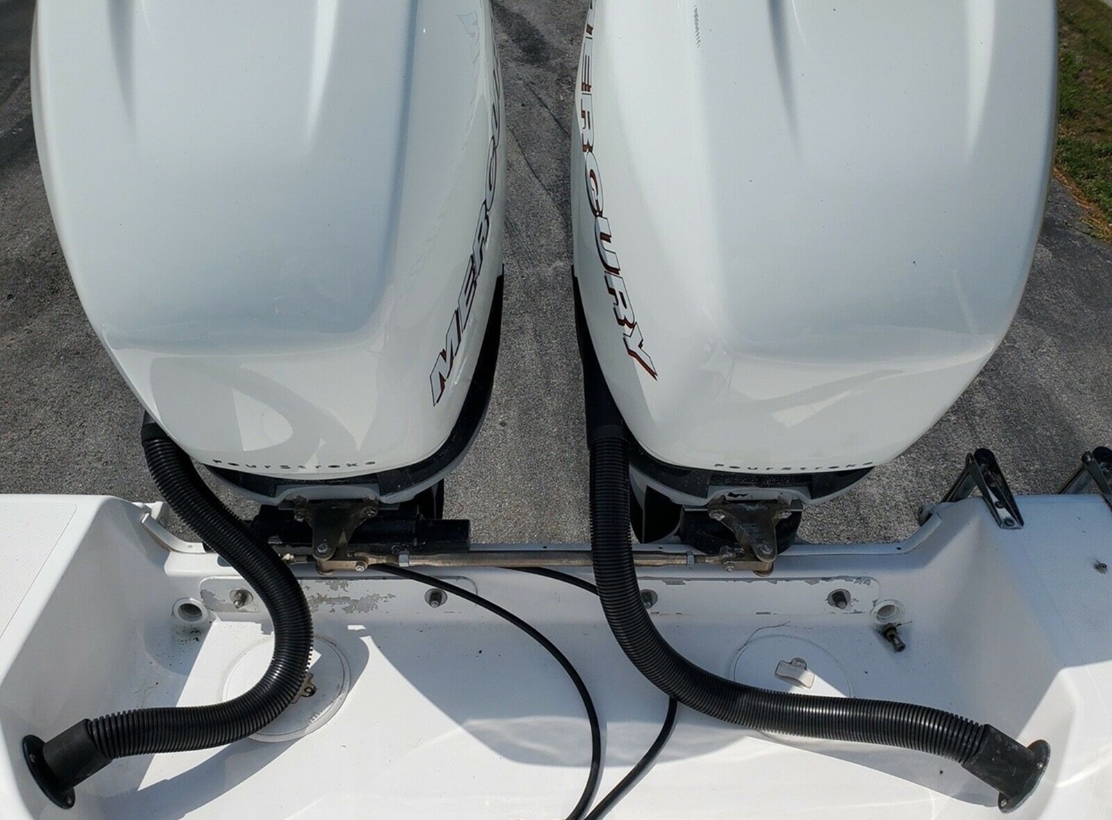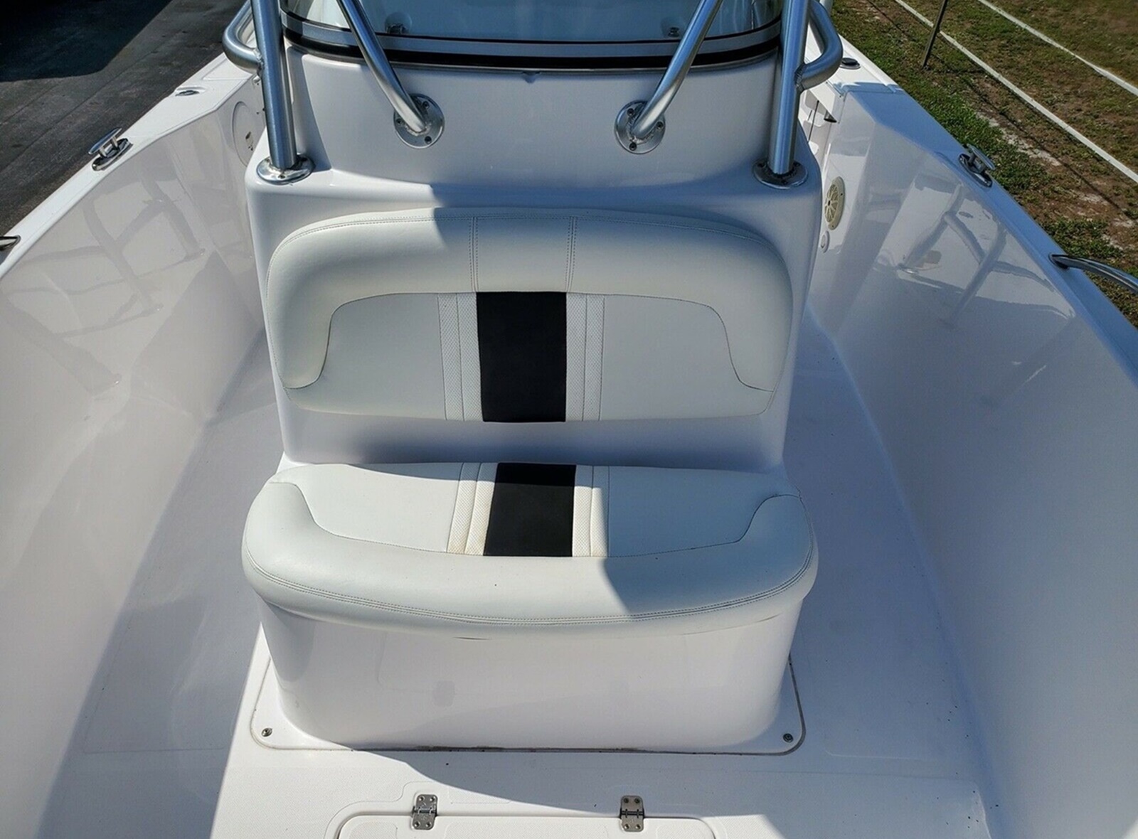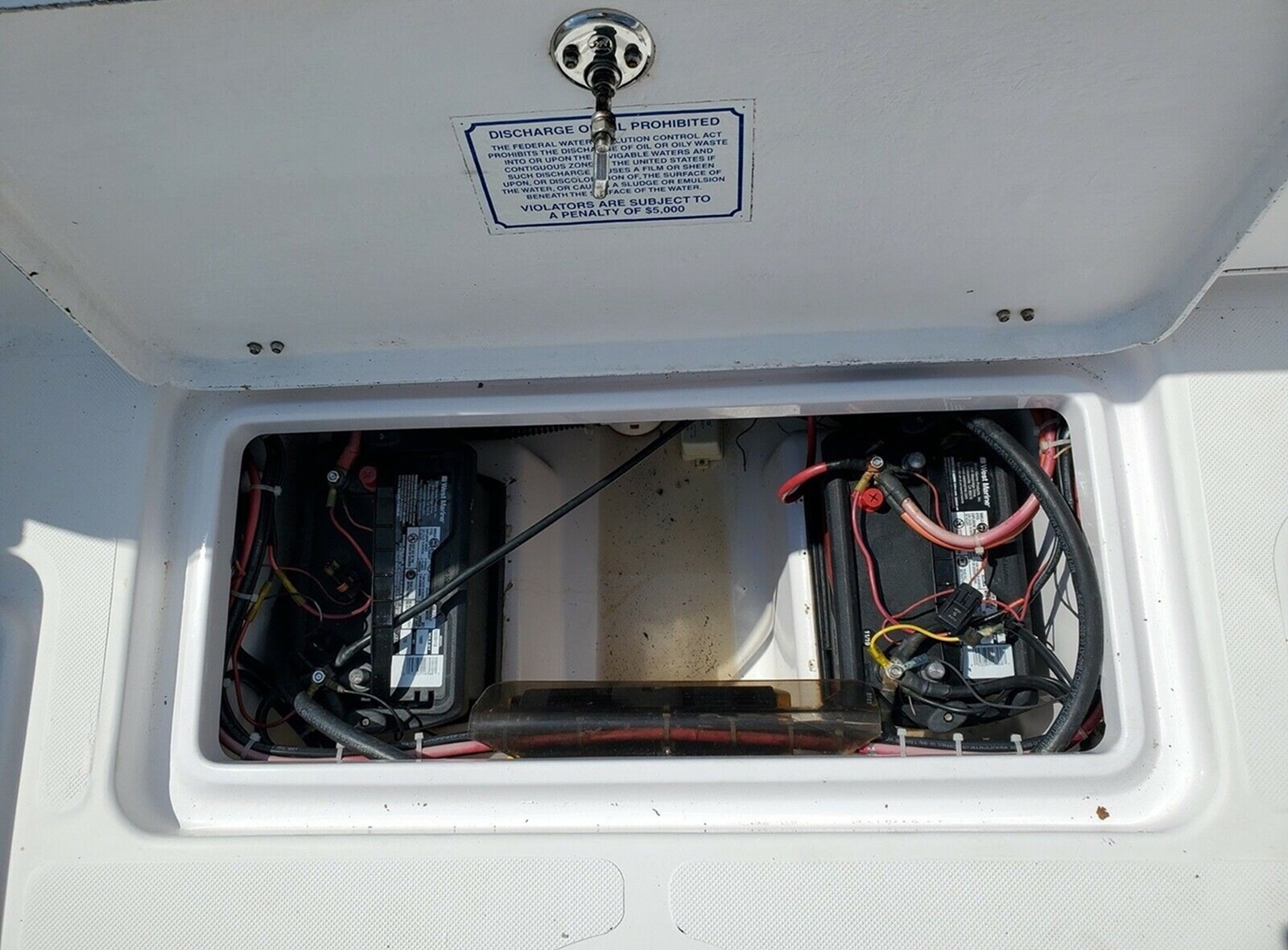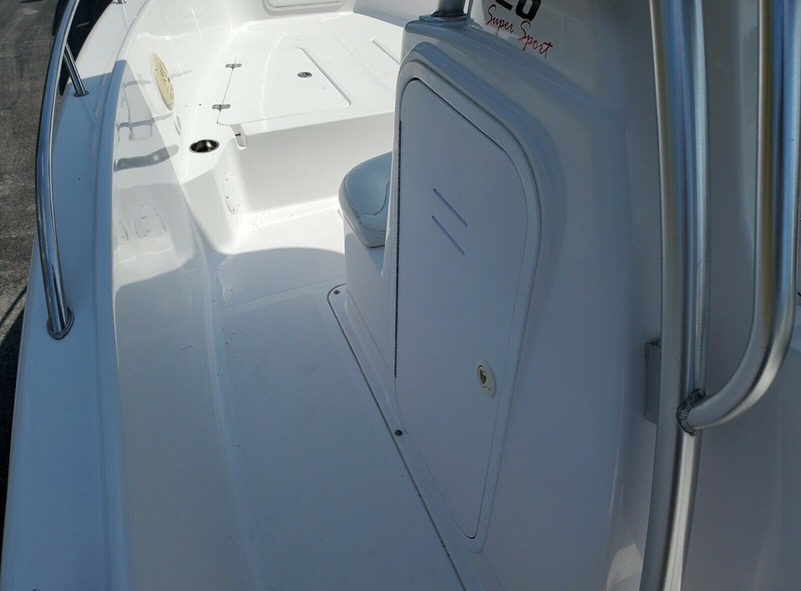 This 2006 Proline 26 Super Sport Center Console, used in freshwater, is in excellent condition. It comes equipped with stainless steel props, drop-down bolster helm seats, an electronics box, Ray Marine C-120 GPS, rocket launchers, CD/stereo, compass, electric anchor windlass, two large fish boxes, a 42-gallon baitwell, flip-down aft seating, trim tabs, swim ladder, gunnel rod holders, and a raw water washdown.